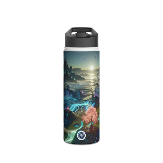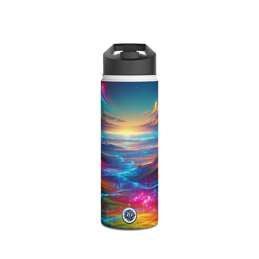 I'm sorry, but the image provided does not depict a stainless steel water bottle or any related product. It appears to be a digital artwork of a