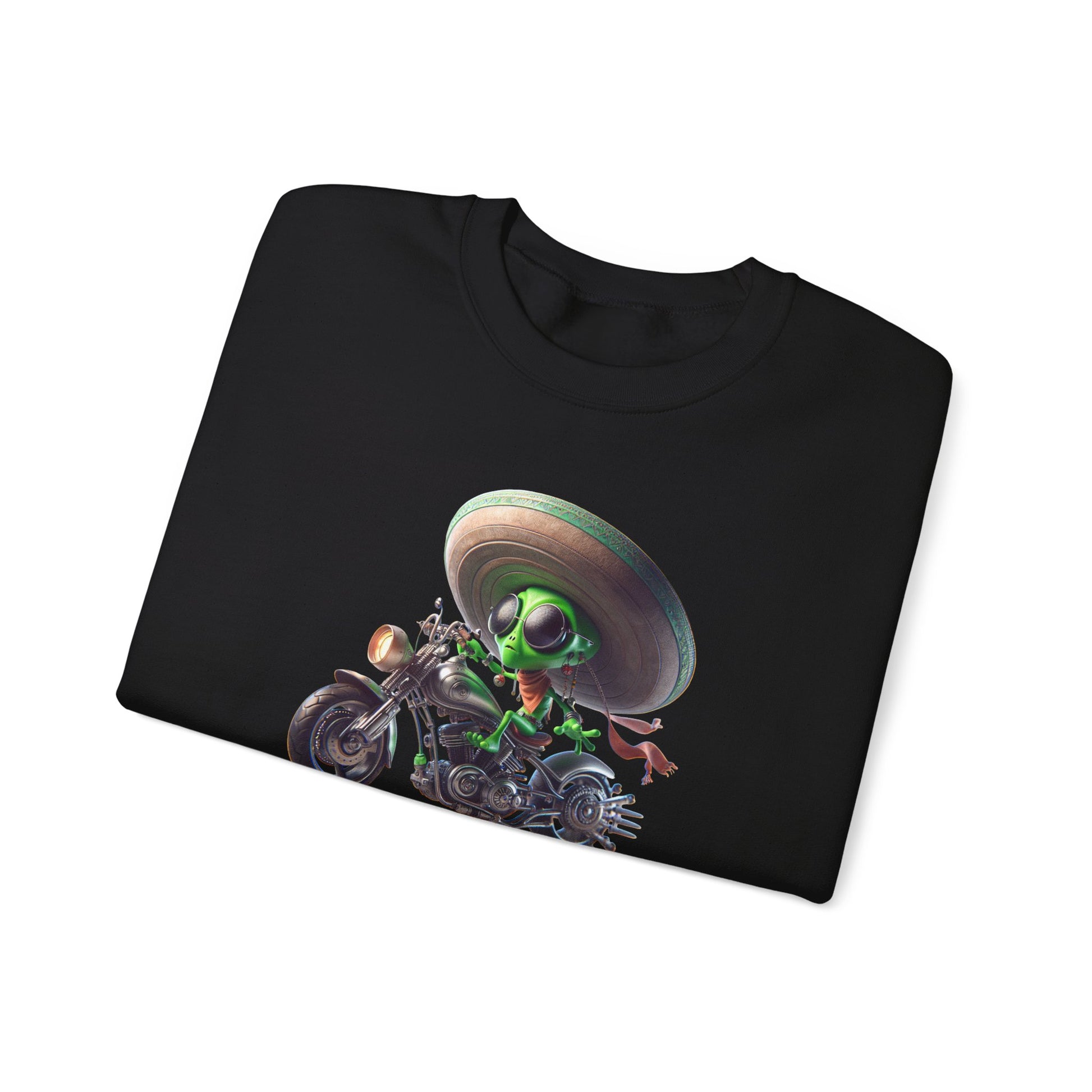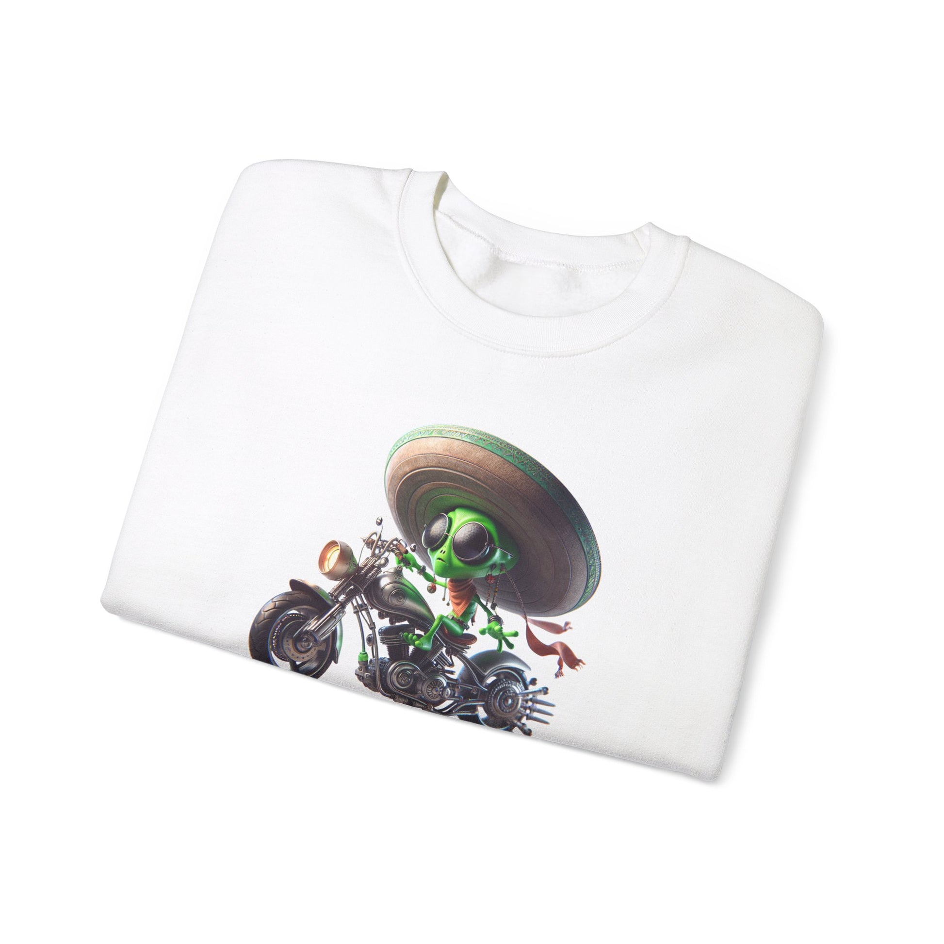 Intergalactic style meets bold flair with our Crewneck featuring a groovy green alien rocking shades and a sombrero, casually stepping off his futuristic motorcycle. Whether you're exploring outer space or chilling at a cosmic party, this crewneck is sure to turn heads. Embrace the extraterrestrial coolness πΈπ #AlienFashion #SciFiStyle #ExtraterrestrialChic #CosmicCool #FuturisticThreads #SpaceFashion #AlienCrewneck #GroovyAlien #InterstellarOutfit #CosmicVibes