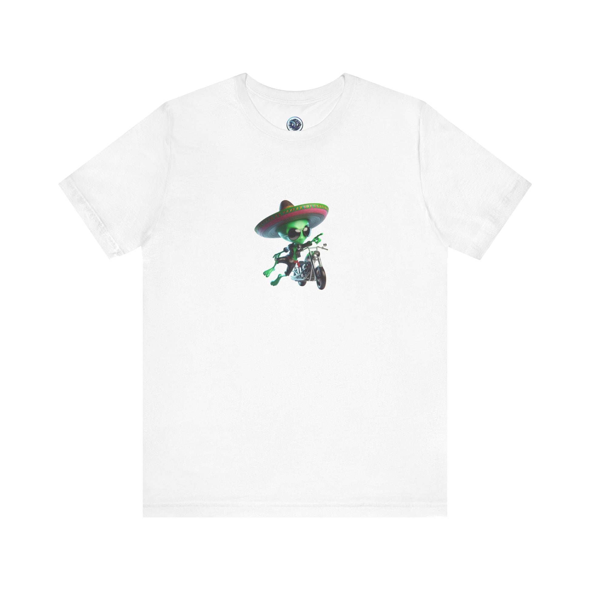 Intergalactic vibes meet with this funky t-shirt featuring a rad sci-fi green alien rocking shades and a sombrero! Picture this extraterrestrial cruising on his futuristic motorcycle - an out-of-this-world design that's bound to turn heads! Perfect for sci-fi enthusiasts and alien lovers alike, this tee is a must-have for those who love a touch of the unknown in their wardrobe. 💫👽🕶️🌌 #AlienFashion #SciFiStyle #ExtraterrestrialChic #FunkyAlien #SpaceTraveler #GalacticCool #SombreroStyle #MotorcycleAlien #SpaceFashion #OutofthisWorldFashion