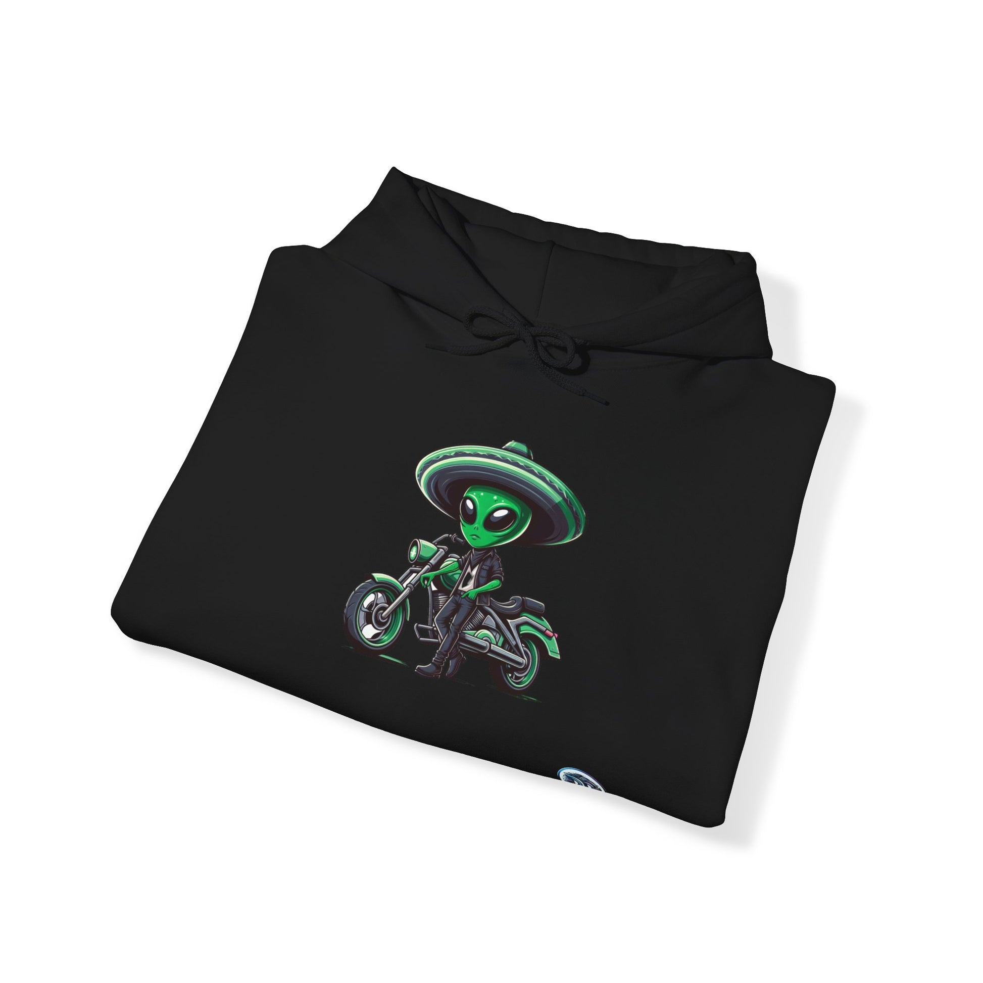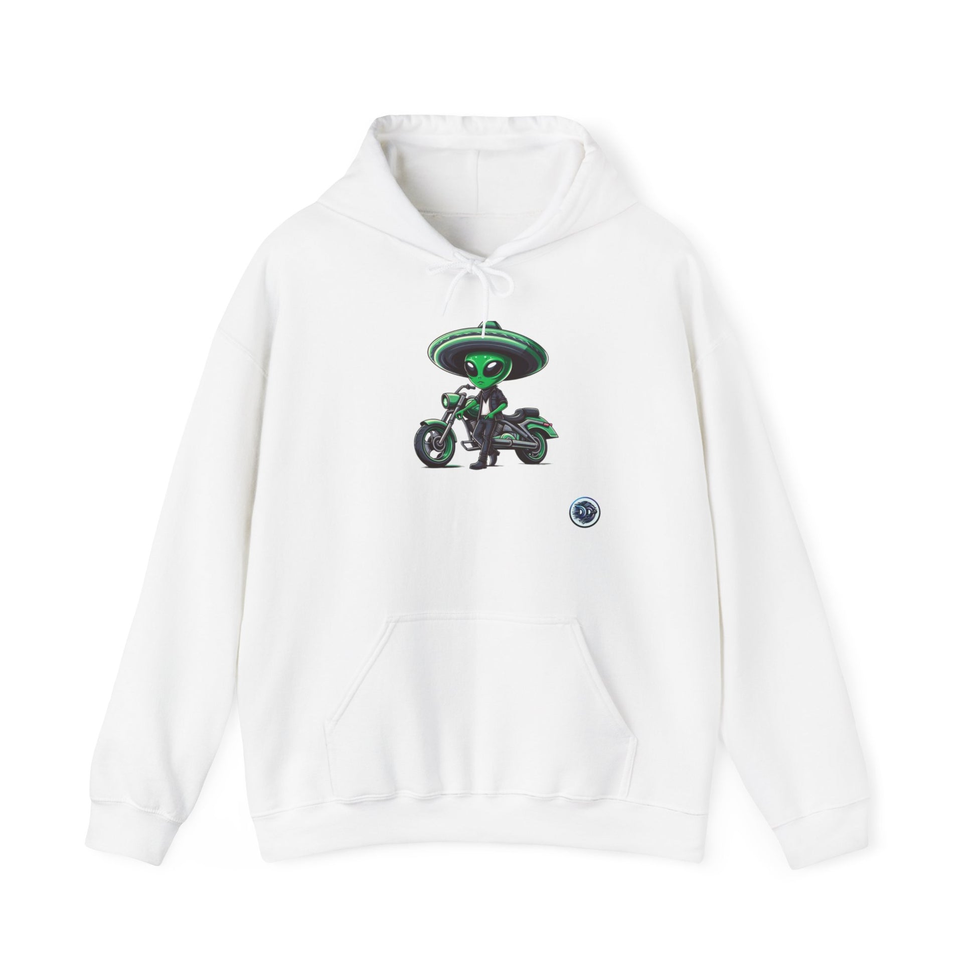 Intergalactic style meets rad vibes with our Alien Explorer Hoodie! This cozy hoodie features a bold graphic of a green alien sporting shades and a sombrero, stepping off his sleek futuristic motorcycle. Perfect for space adventures and Earthly escapades, this hoodie is out of this world! #AlienFashion #SciFiStyle #ExtraterrestrialChic #FuturisticGear #GalacticCool #HoodieFashion #SpaceExplorer #AlienLife #SombreroStyle #RadVibes