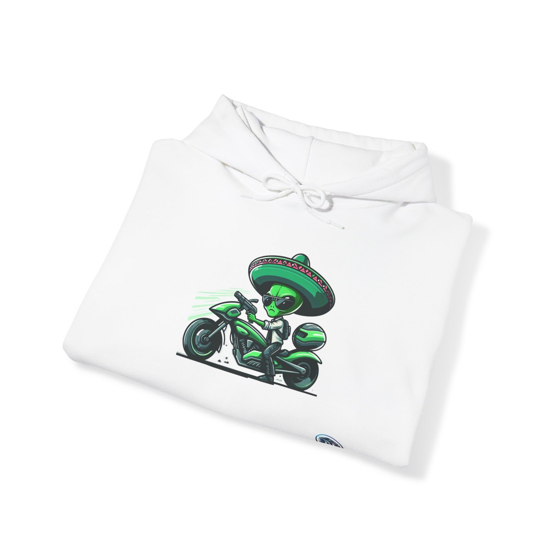 Stay cool and stylish with our Alien Green Sci-Fi Hoodie! This quirky hoodie features a fun cartoon alien character sporting shades and a sombrero, just stepping off his futuristic motorcycle. The white background design enhances the unique appeal of this hoodie. Stand out from the crowd and embrace your inner sci-fi enthusiast with this eye-catching piece! #AlienFashion #SciFiStyle #HoodieGoals #FuturisticFashion #CartoonClothing #CoolAlien #UniqueApparel #AlienArt #OutofthisWorld #FunFashion