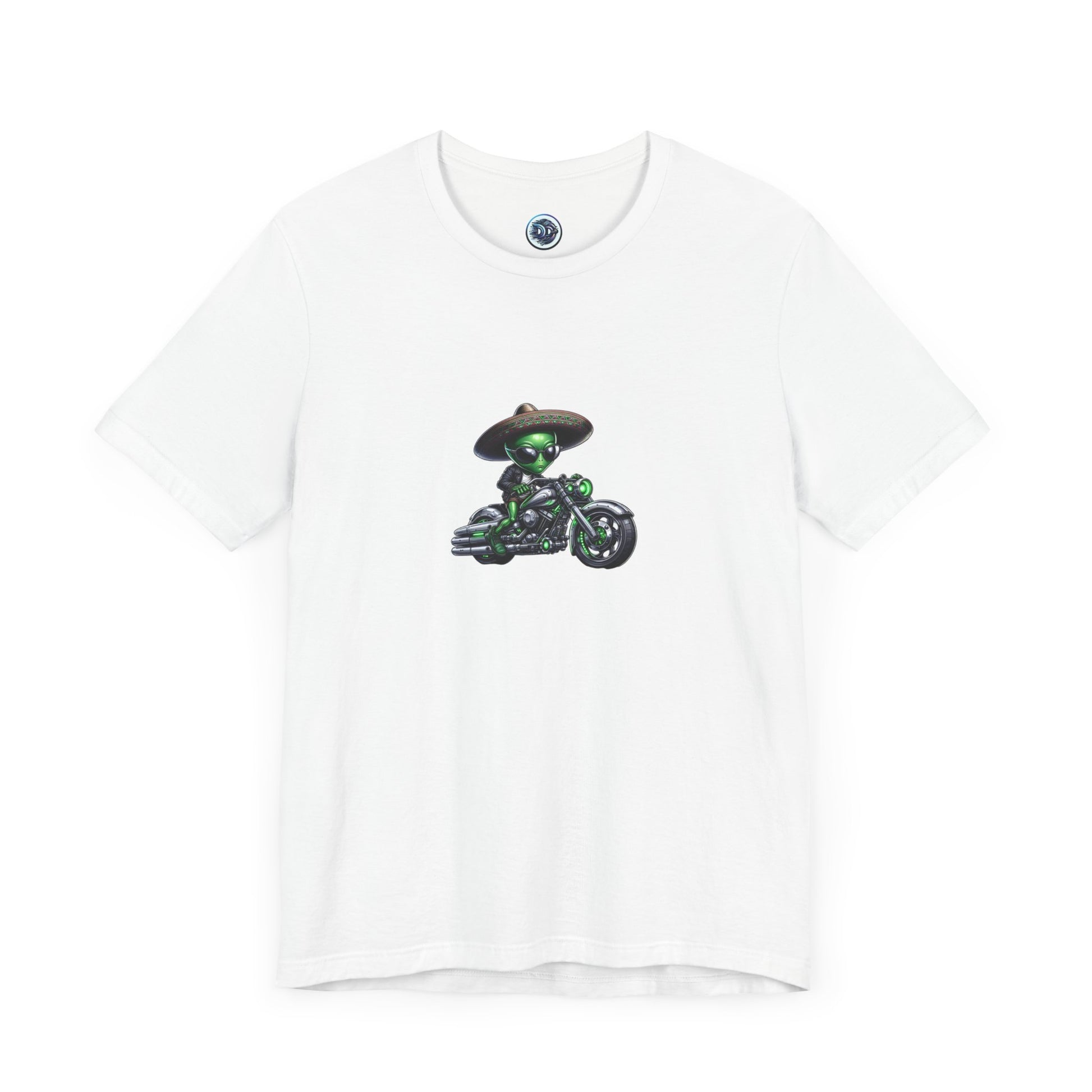 ***Intergalactic Coolness Alert!*** Get ready to level up your style game with our Sci-Fi Green Alien Cartoon Character T-shirt! This funky tee features a rad green alien sporting shades and a sombrero, stepping off his futuristic motorcycle in a galaxy far, far away. Stand out from the crowd with this out-of-this-world design. #AlienFashion #SciFiStyle #RadShades #GalacticCool #FuturisticFashion #SpaceTee #AlienVibes #ExtraterrestrialChic #SombreroSwag #UniqueTee 🛸🌌🕶️👽👕