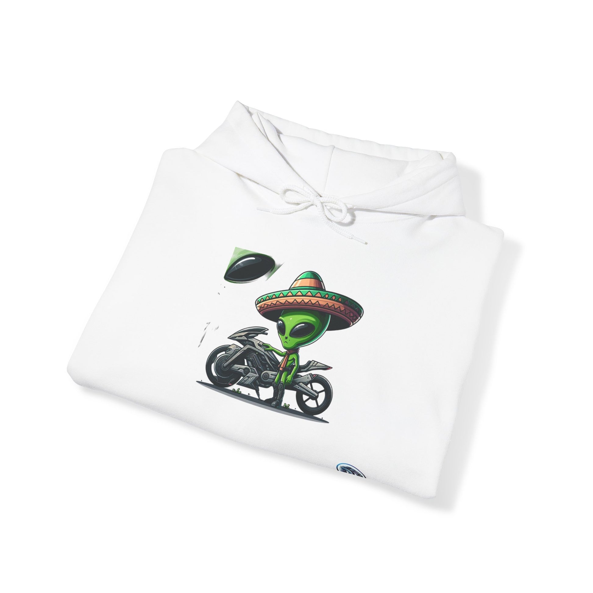Introducing our exclusive Sci-Fi Green Alien Hoodie, featuring a badass cartoon character in shades and a sombrero, stepping off a futuristic motorcycle. Made for comfort and style, this ultra-cool hoodie is perfect for any adventure. Stand out in the crowd with this unique design. #SciFiFashion #AlienStyle #HoodieSeason #AdventureApparel #CartoonCharacter #FuturisticVibes #CoolHoodies #UniqueDesign #StandOut #FashionForward
