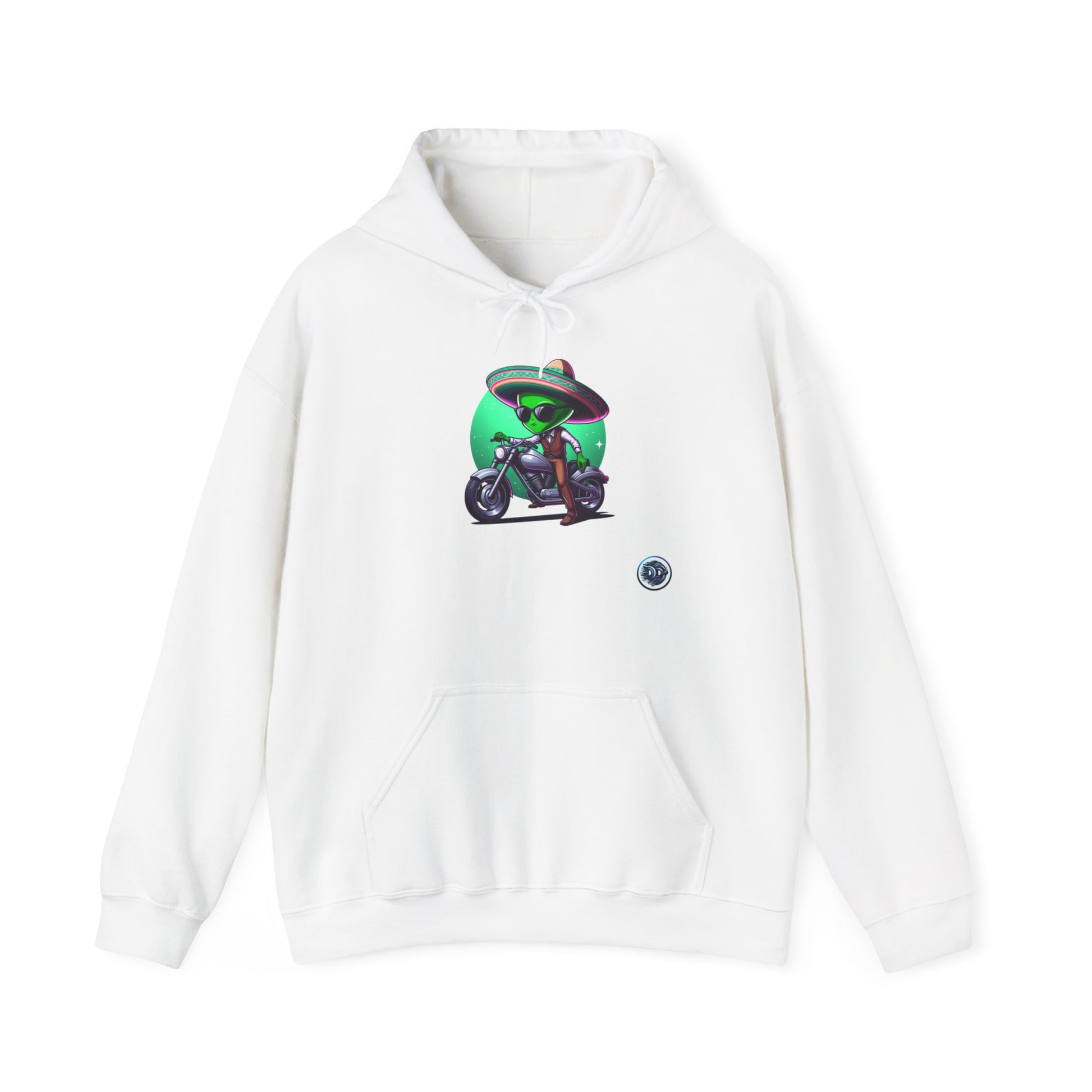 Unleash your intergalactic style with our Alien Adventure Hoodie! Meet Zork, the groovy green alien who's always wearing shades and a sombrero. Watch him step off his futuristic motorcycle on this ultra-cool design. Perfect for any sci-fi fan. Grab yours now and take your fashion game to another galaxy! #AlienFashion #SciFiStyle #SpaceTrend #ExtraterrestrialChic #CoolAlien #HoodieLove #FuturisticFashion #GreenAlien #UniqueHoodies #FashionFromSpace