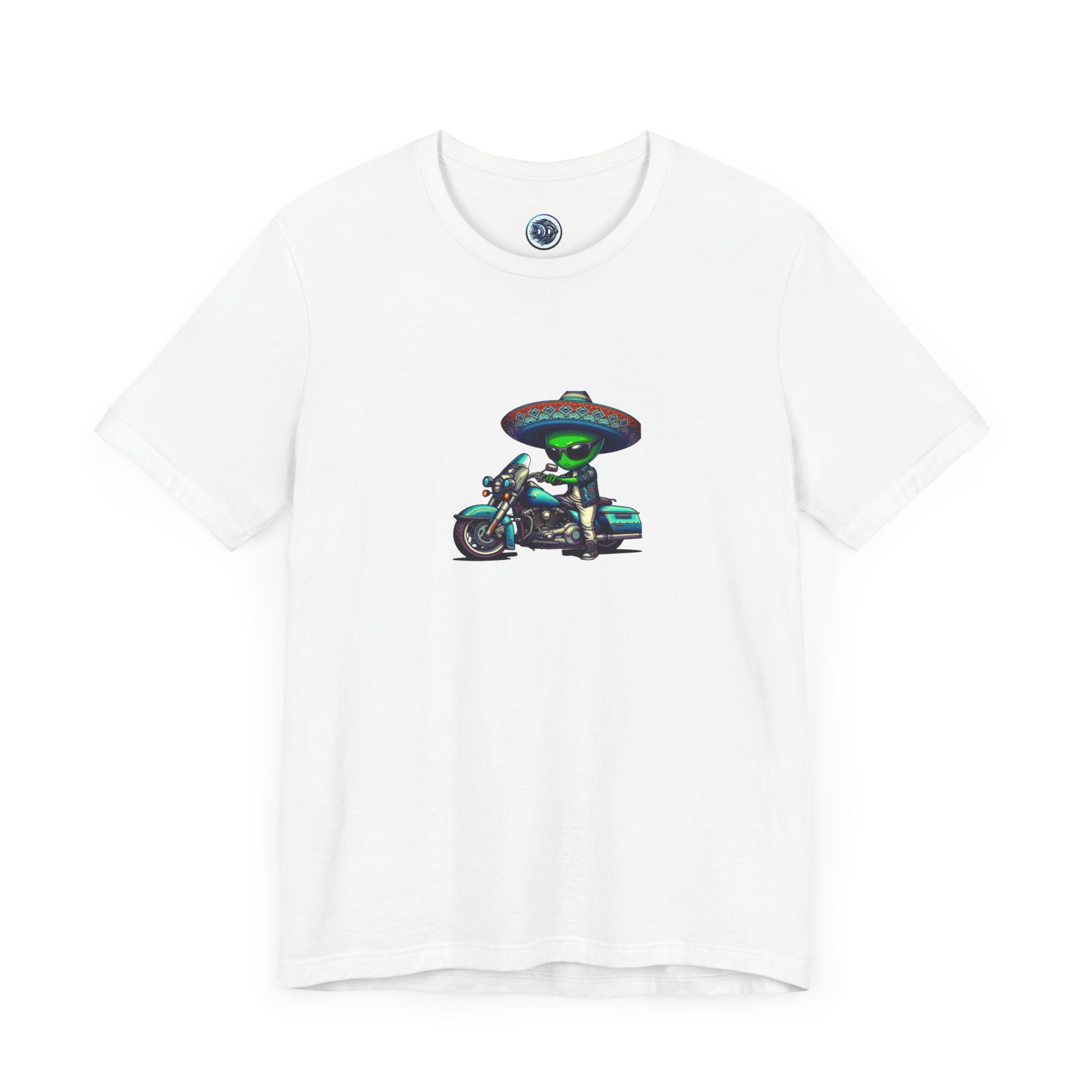 #AlienFashion #SciFiStyle #FuturisticTee #CartoonAlien #CoolShades #SombreroStyle #SpaceFashion #RetroFuture #GalacticTrend #ExtraterrestrialDesign