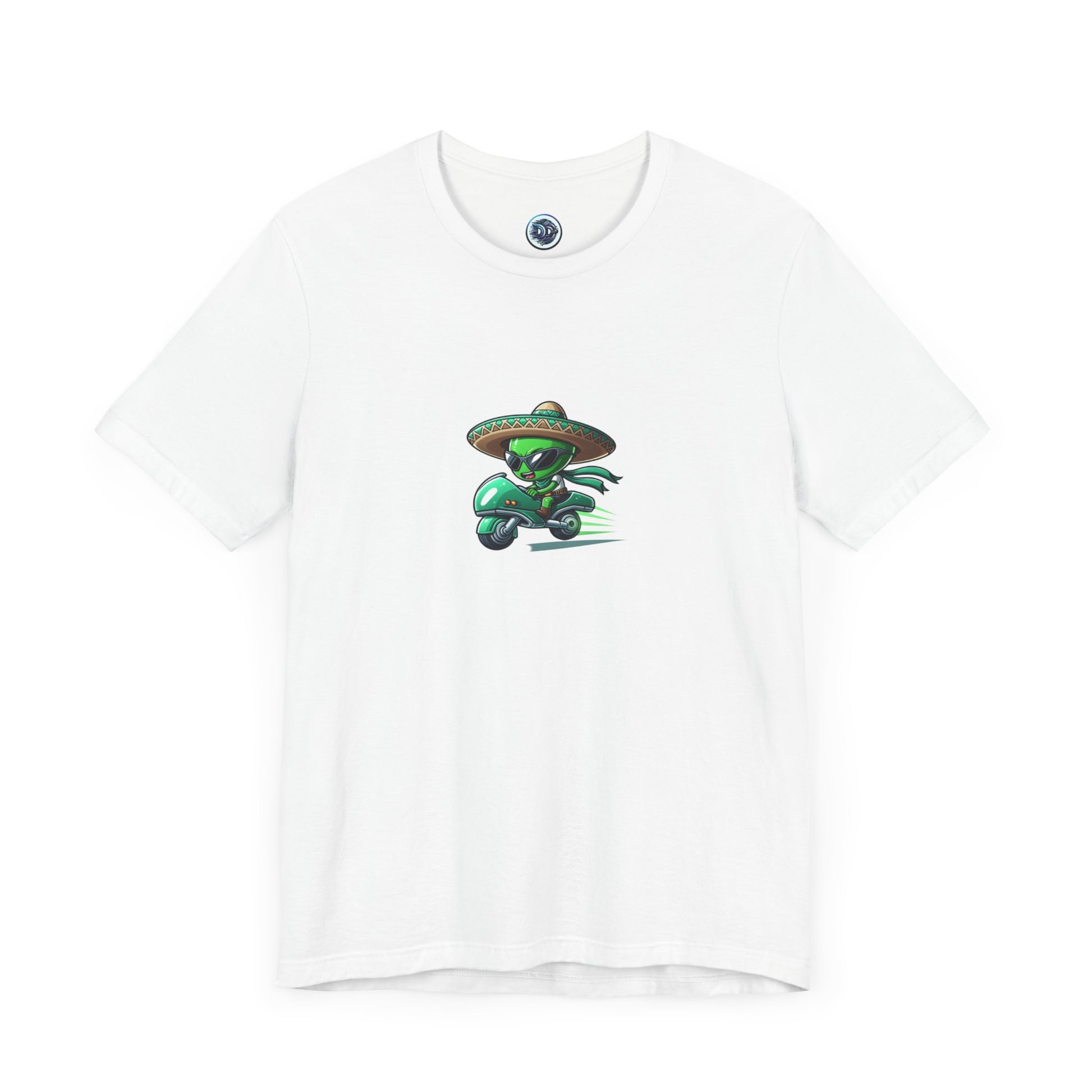 #AlienFashion #SciFiStyle #UniqueTees #CartoonCharacter #FuturisticDesign #CoolShades #SombreroStyle #TrendyTee #OutofThisWorld #ElevateYourStyle