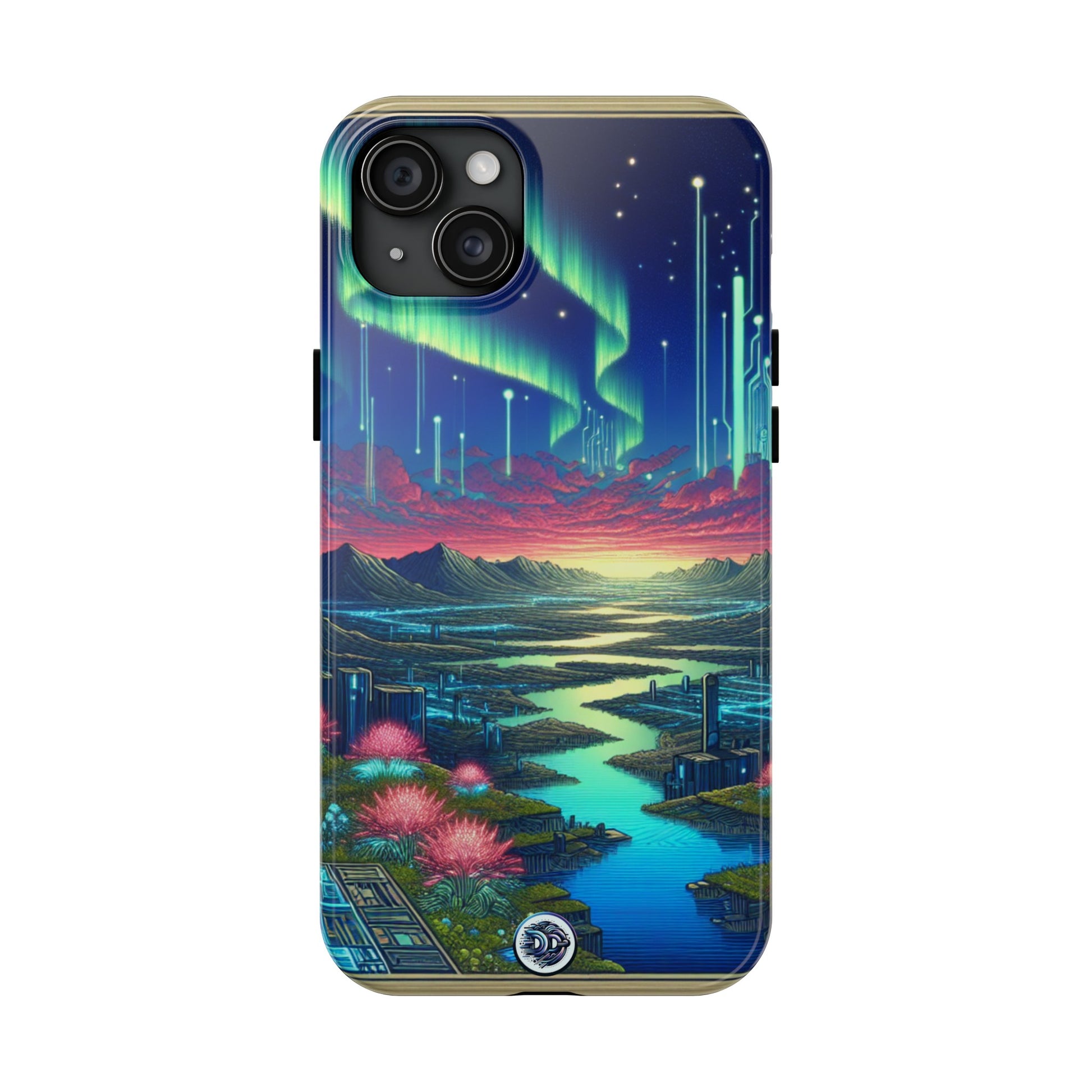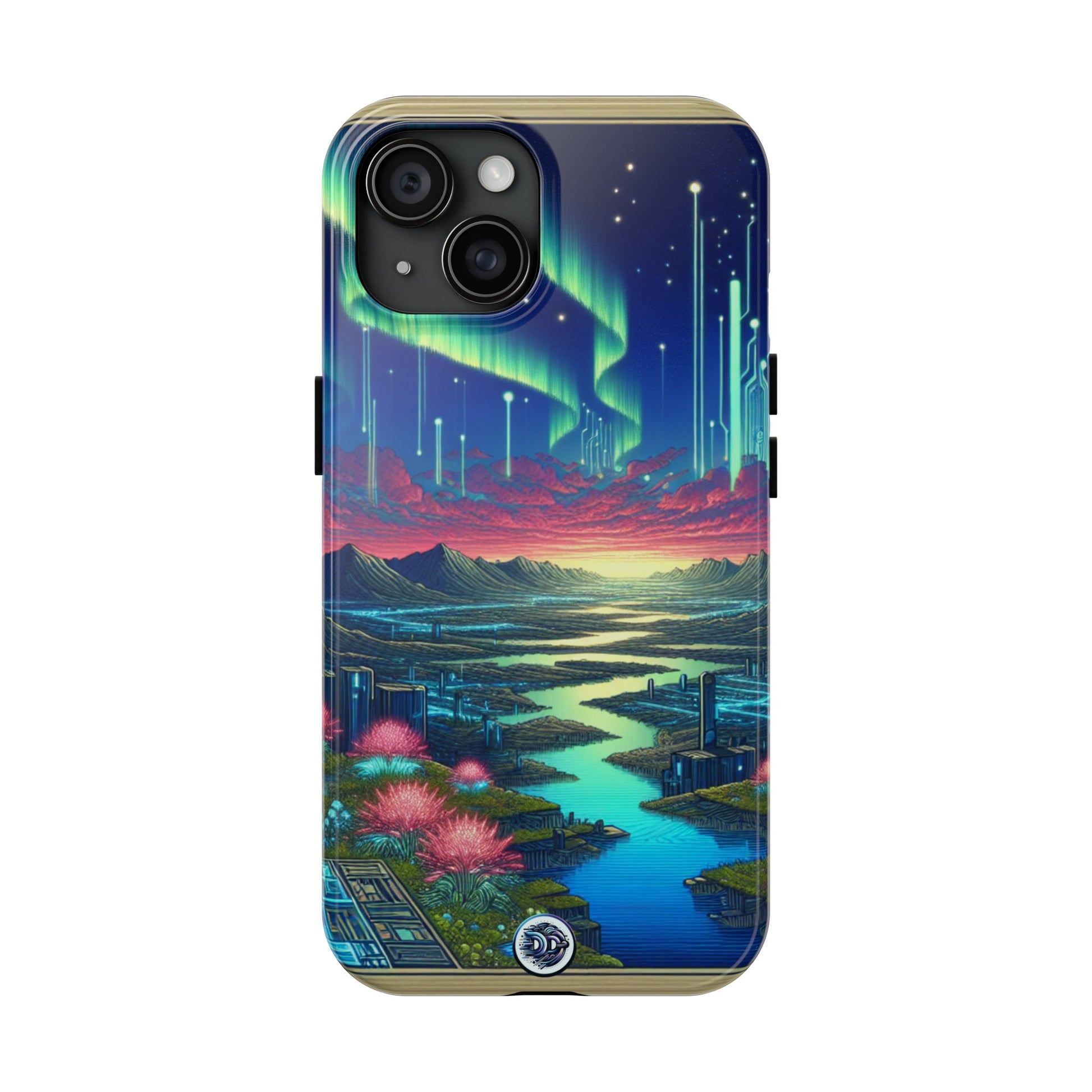 Cloak your phone in the vibrant hues of a cyberpunk wonderland with this one-of-a-kind case! Witness a futuristic landscape— neon flora, advanced tech, glowing rivers, aurora-lit sky— artfully blending civilization with nature. Embrace a look that's fluid, organic and endlessly captivating. #Cyberpunk #TechNature #NeonFlora #GlowingRivers #PhoneCase #FuturisticArt #Auroras #EcoTech #PhoneAccessories #DigitalLandscape.