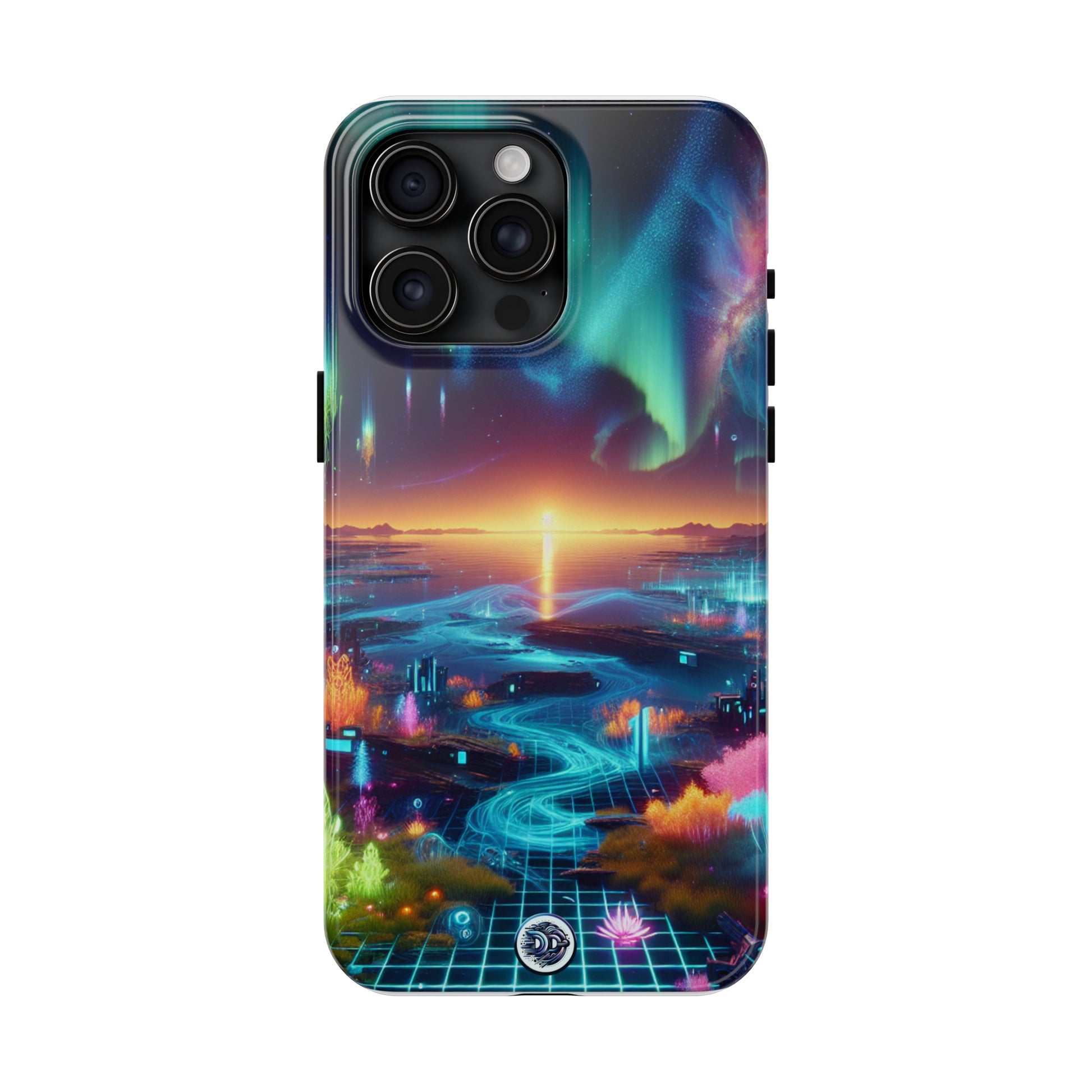 #PhoneCase #CyberpunkArt #NeonFlora #FuturisticTech #OrganicDesign #TechEcology #DigitalLandscape #CyberpunkFuture #GlowingLakes #AuroraSkies