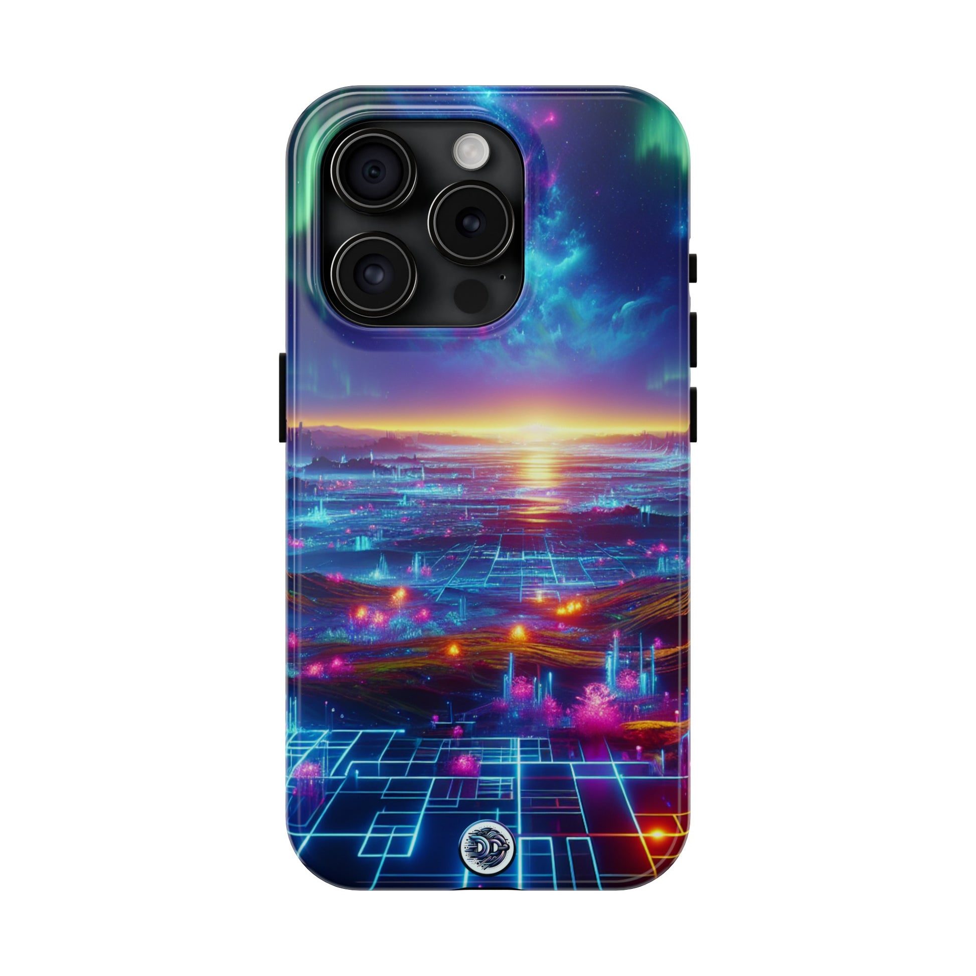 Explore the cyber-future with our phone case! Immerse in a vivid, digital landscape devoid of confines, awash with neon flora, advanced tech, and glowy water bodies. Experience the poetic blend of nature and tech. No grids, no blue squares, just an aurora-lit cyberpunk utopia in your hands. #PhoneCase #CyberPunk #NeonFlora #AdvancedTechnology #NatureBlend #AuroraSky #DigitalLandscape #TechAccessories #EcoFuture #VibrantDesign