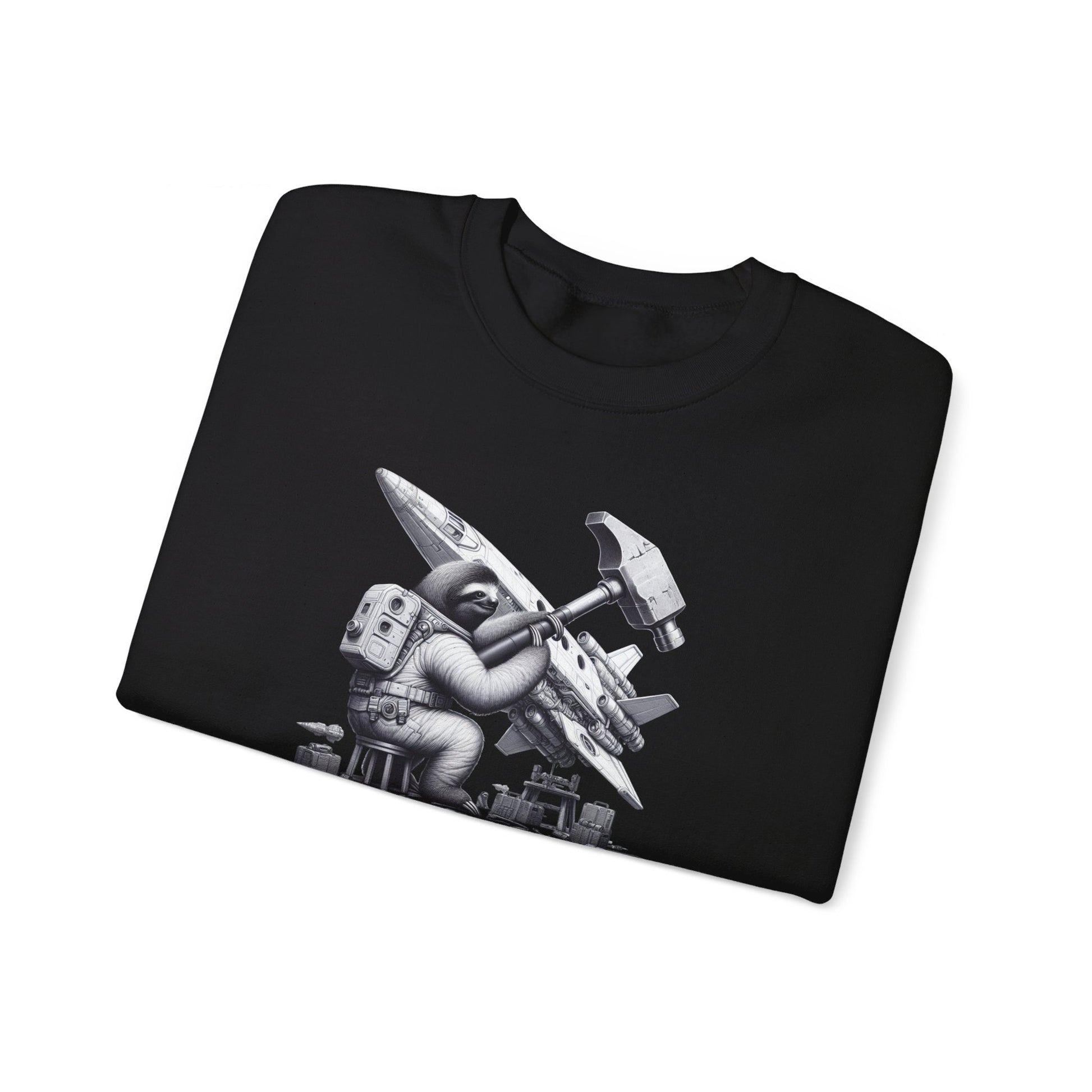 Introducing the Futuristic Space-Bound Sloth Crewneck! Step into a whimsical world where a sloth, armed with an unusually large hammer, expertly repairs his advanced spaceship. This crewneck captures the essence of determination and relaxation all in one. Let this design transport you to a high-tech space adventure like no other. #SpaceSloth #FuturisticFashion #ComfyCrewneck #WhimsicalDesign #SlothLife #OuterSpaceStyle #HammerTime #SpaceAdventure #UniqueFashion #EpicSlothJourney