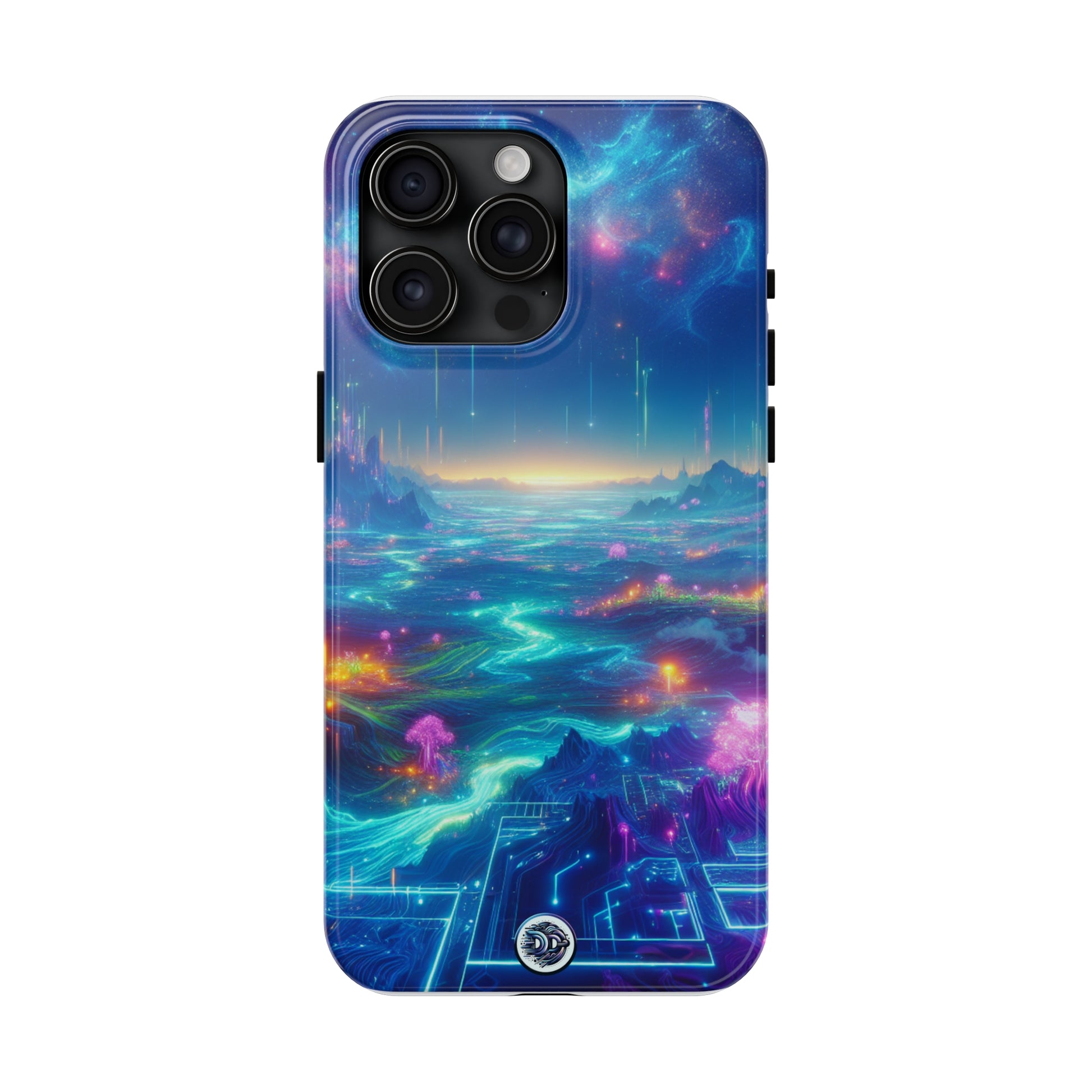 #PhoneCase #CyberPunk #TechNatureBlend #VibrantColors #NeonFlora #FuturisticTech #RadiantWaters #Utopia #SeamlessDesign #SmartphoneAccessory