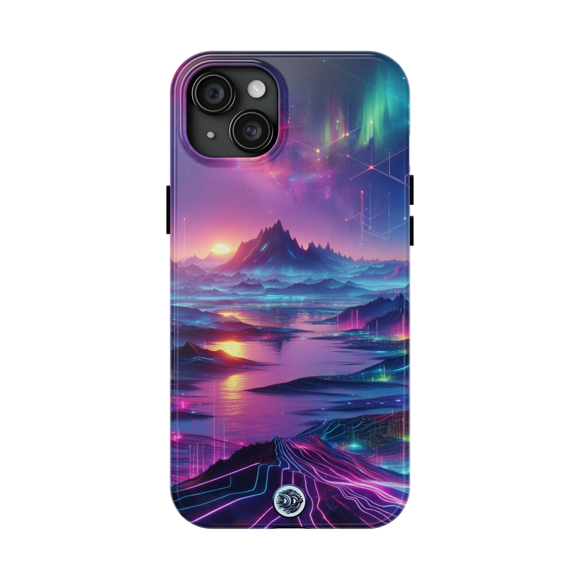 Immerse yourself in a futuristic vision with our Cyberpunk-themed phone case. Highlighted by neon-colored flora, advanced tech, glowing water bodies, and an aurora-lit sky, it celebrates technology in harmony with nature. No grids or buildings, pure fluid elegance. #PhoneCase #Cyberpunk #NeonFlora #TechHarmony #AuroraSky #GlowingRivers #VibrantColors #OpenSpace #FuturisticDesign #NatureTechBlend