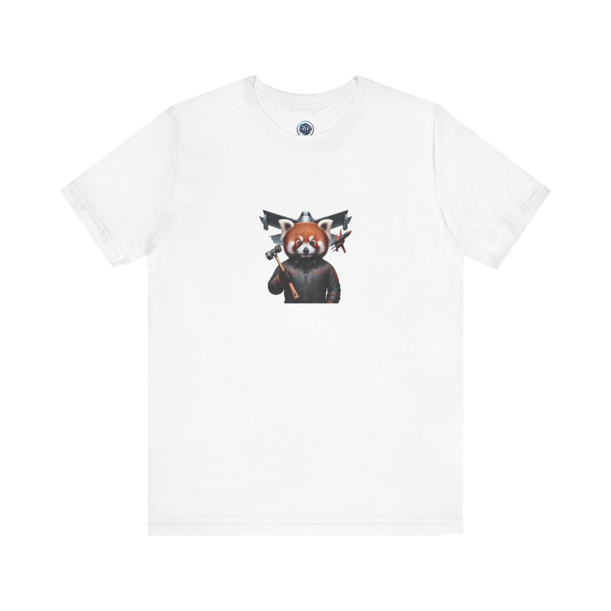 Introducing our exclusive Red Panda Hammer Space Chip T-shirt! Adorned with a playful red panda wielding a hammer and a space chip, dressed in a jumpsuit, this tee is absolute fun! The design pops against a crisp white background. Get ready to stand out in style! #RedPanda #Hammer #SpaceChip #Jumpsuit #UniqueDesign #AnimalArt #PlayfulFashion #TeeTime #StandOut #EccentricTees