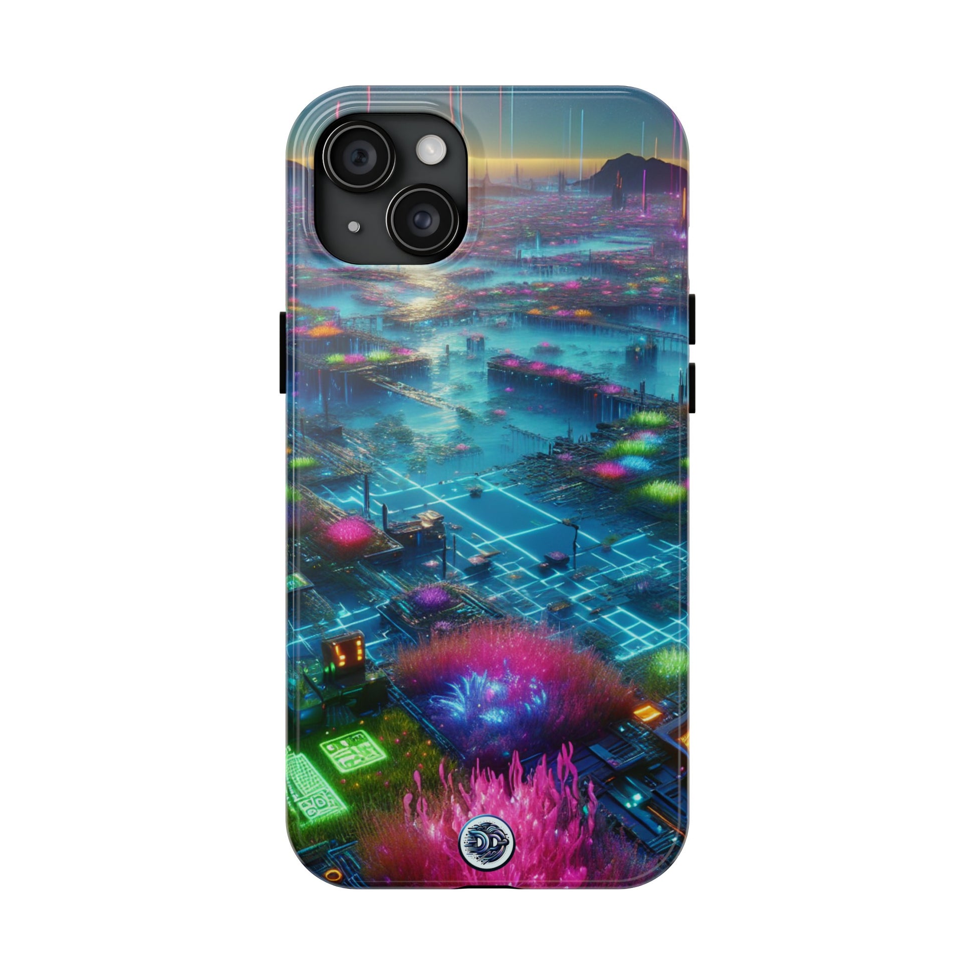 Immerse yourself in a cyberpunk future with our phone case. This unique design features a neon-flora filled, open space scene with cutting-edge tech and glowing bodies of water. Witness an idyllic world where nature and progress coexist, under a sky lit by ethereal auroras. No square grids or buildings - just fluid, organic harmony. #PhoneCase #Cyberpunk #NeonFlora #AdvancedCivilization #Futuristic #TechNatureHarmony #NoGrid #AuroraSky #StylishTech #OpenSpaceAesthetic