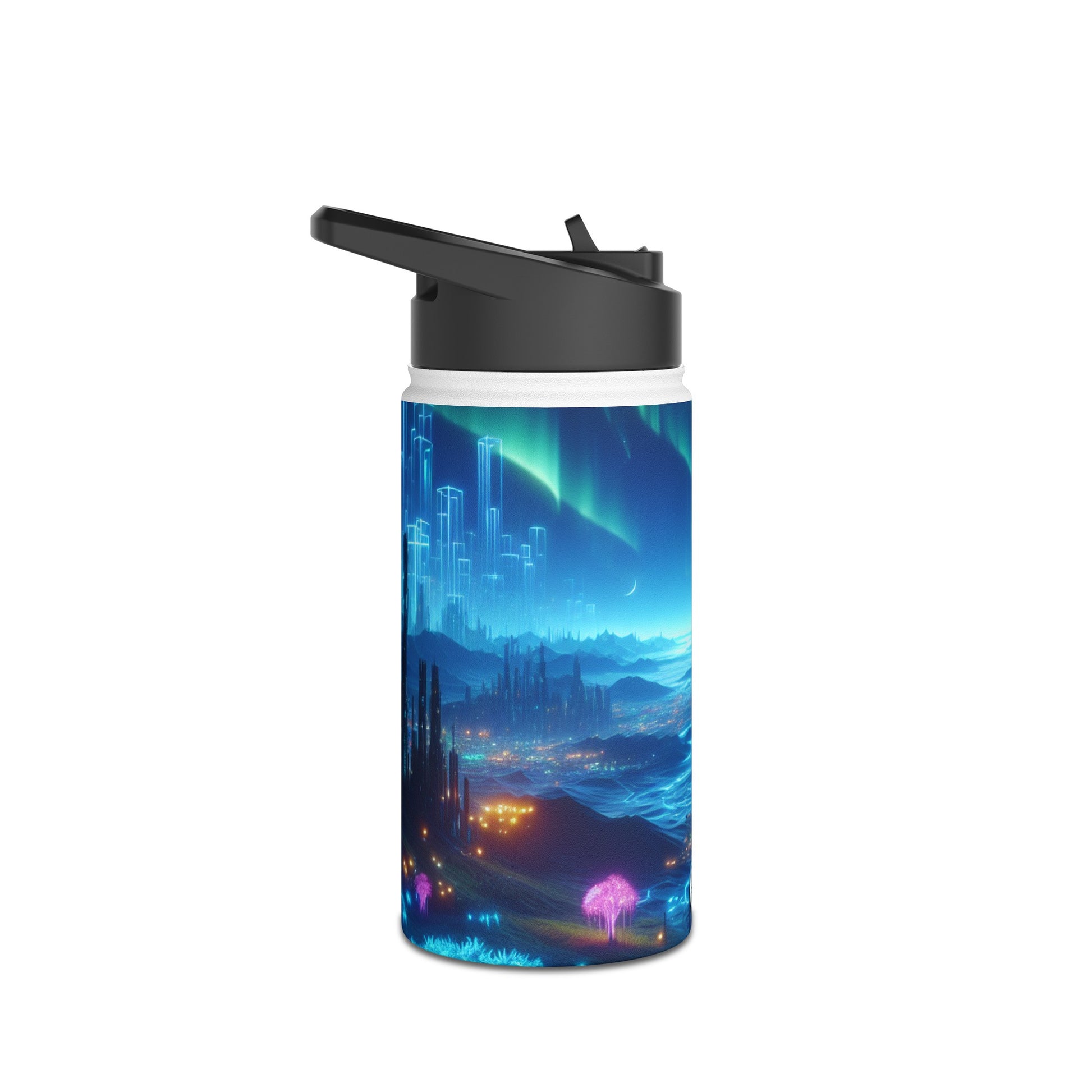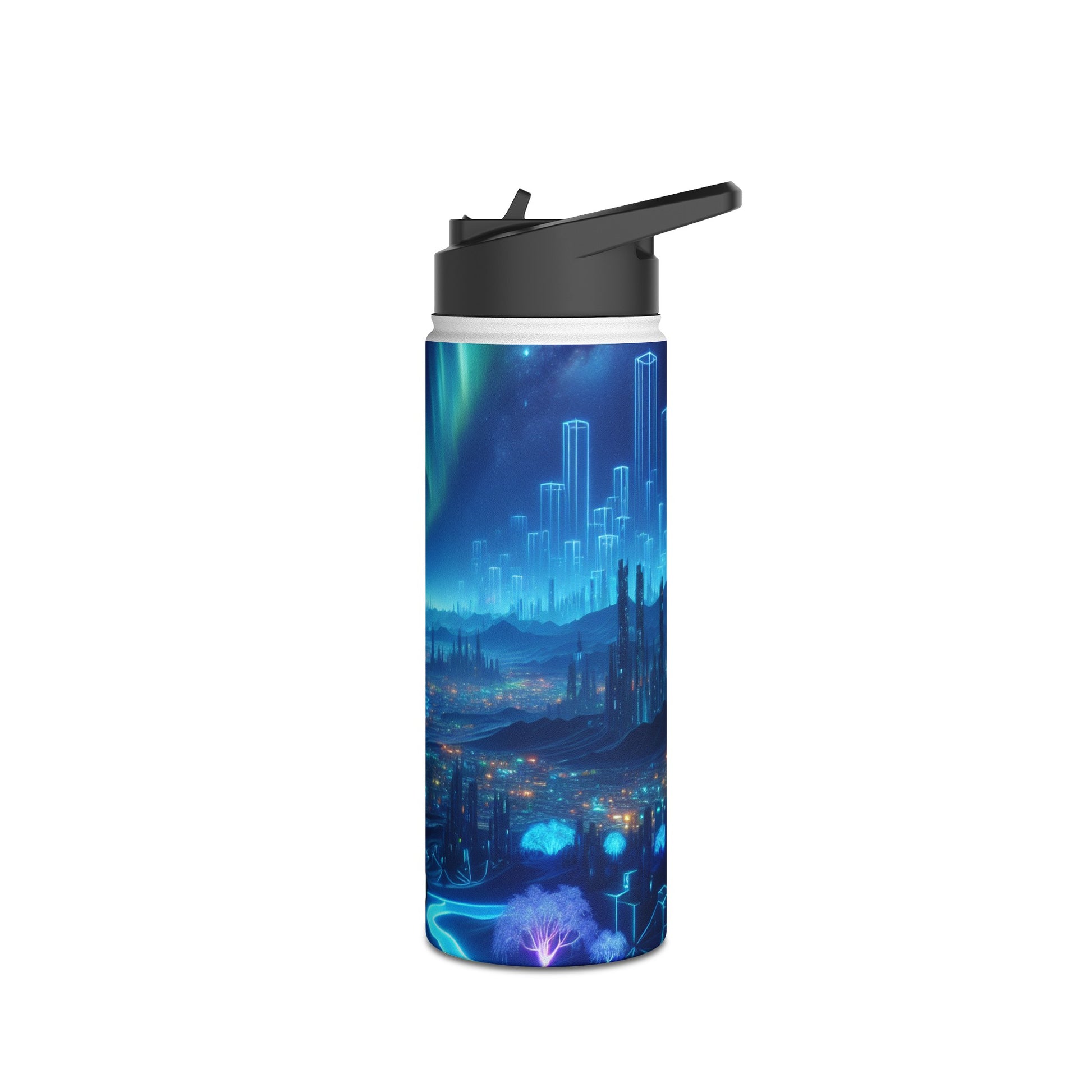 Quench your thirst in style with our Stainless Steel Water Bottle. Sleek and durable, this bottle comes with a Standard Lid for easy sipping. Stay hydrated in any futuristic landscape. #StainlessSteel #WaterBottle #Cyberpunk #Futuristic #Technology #NeonFlora #NatureTechIntegration #Hydration #SustainableLiving #StayHydrated