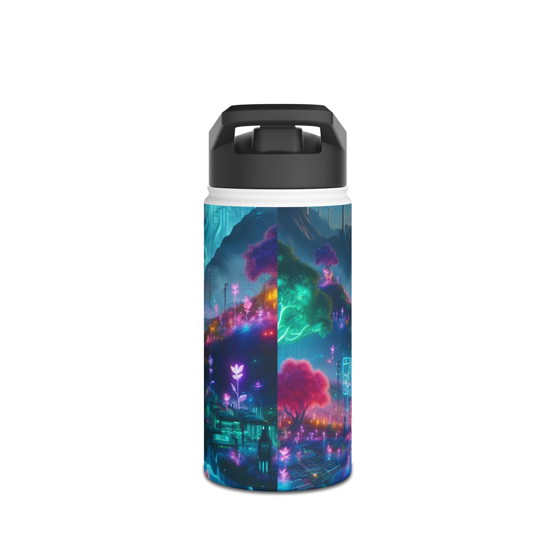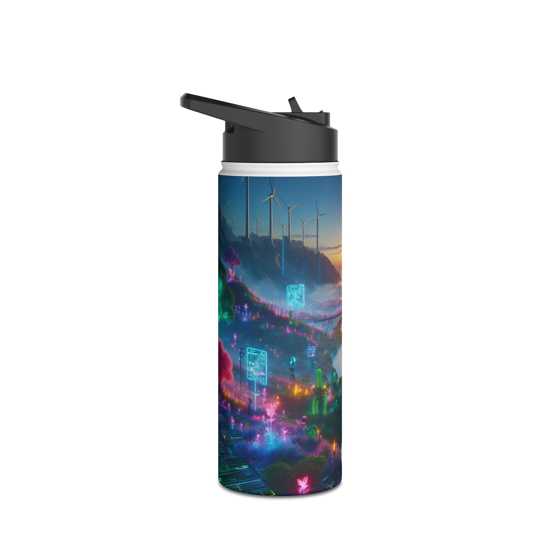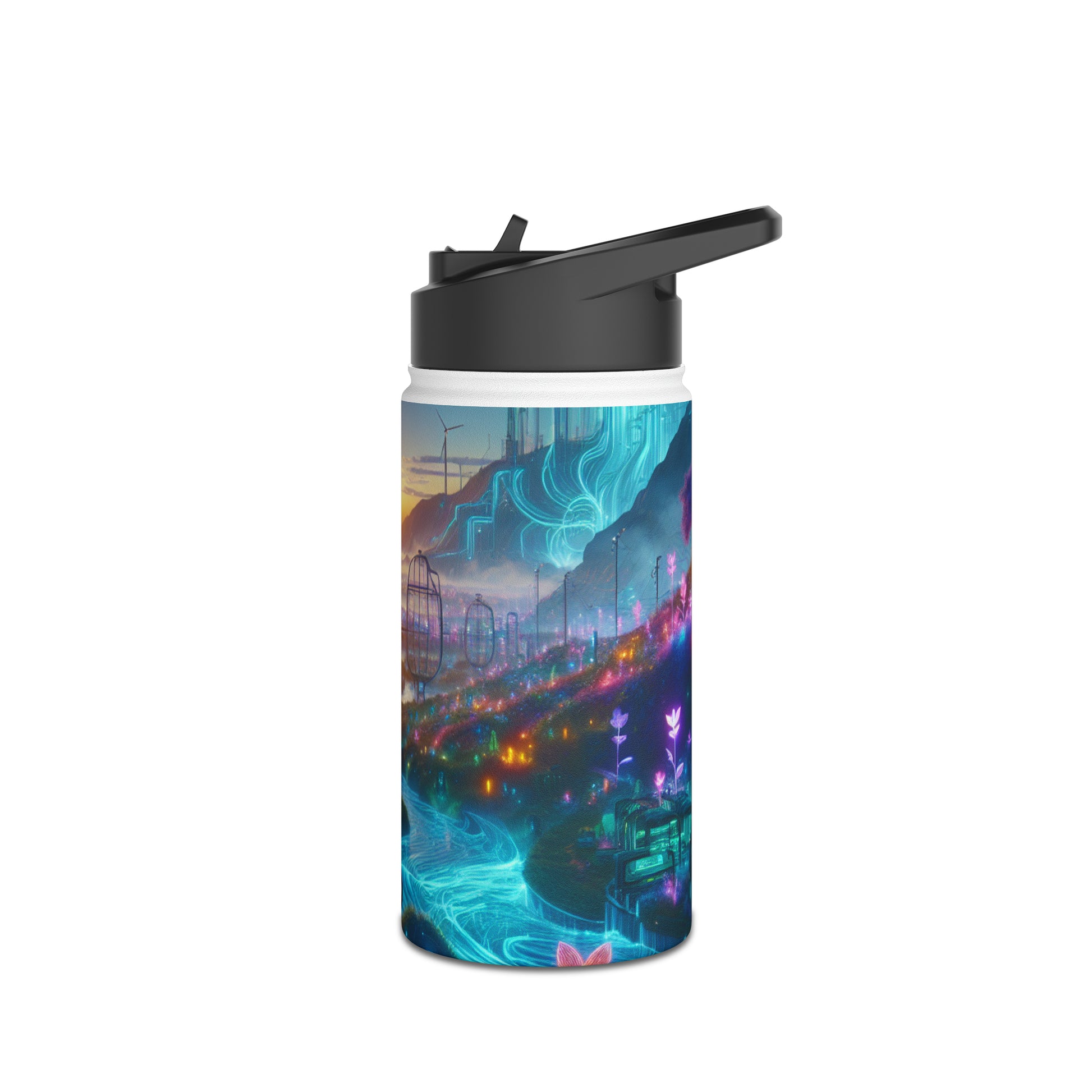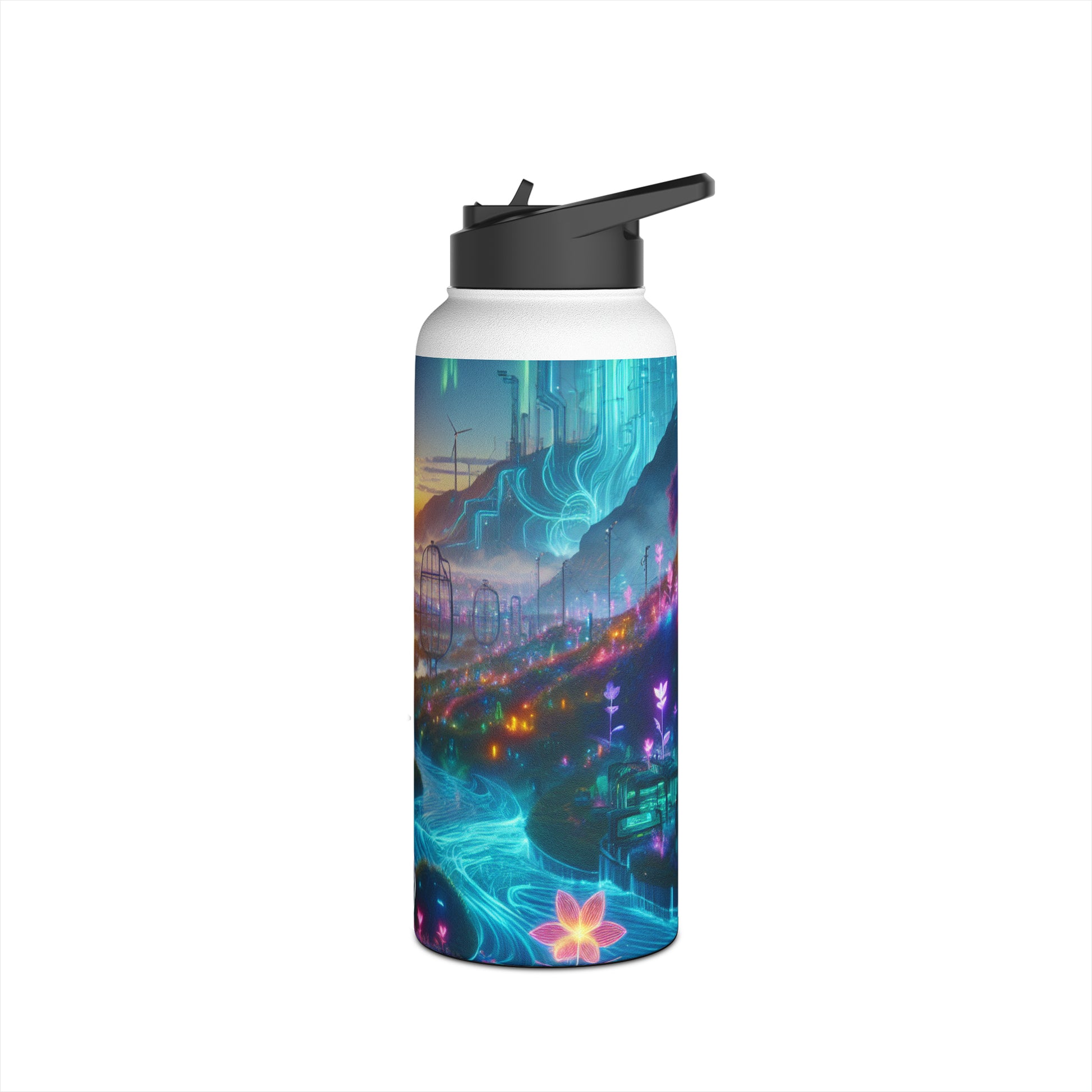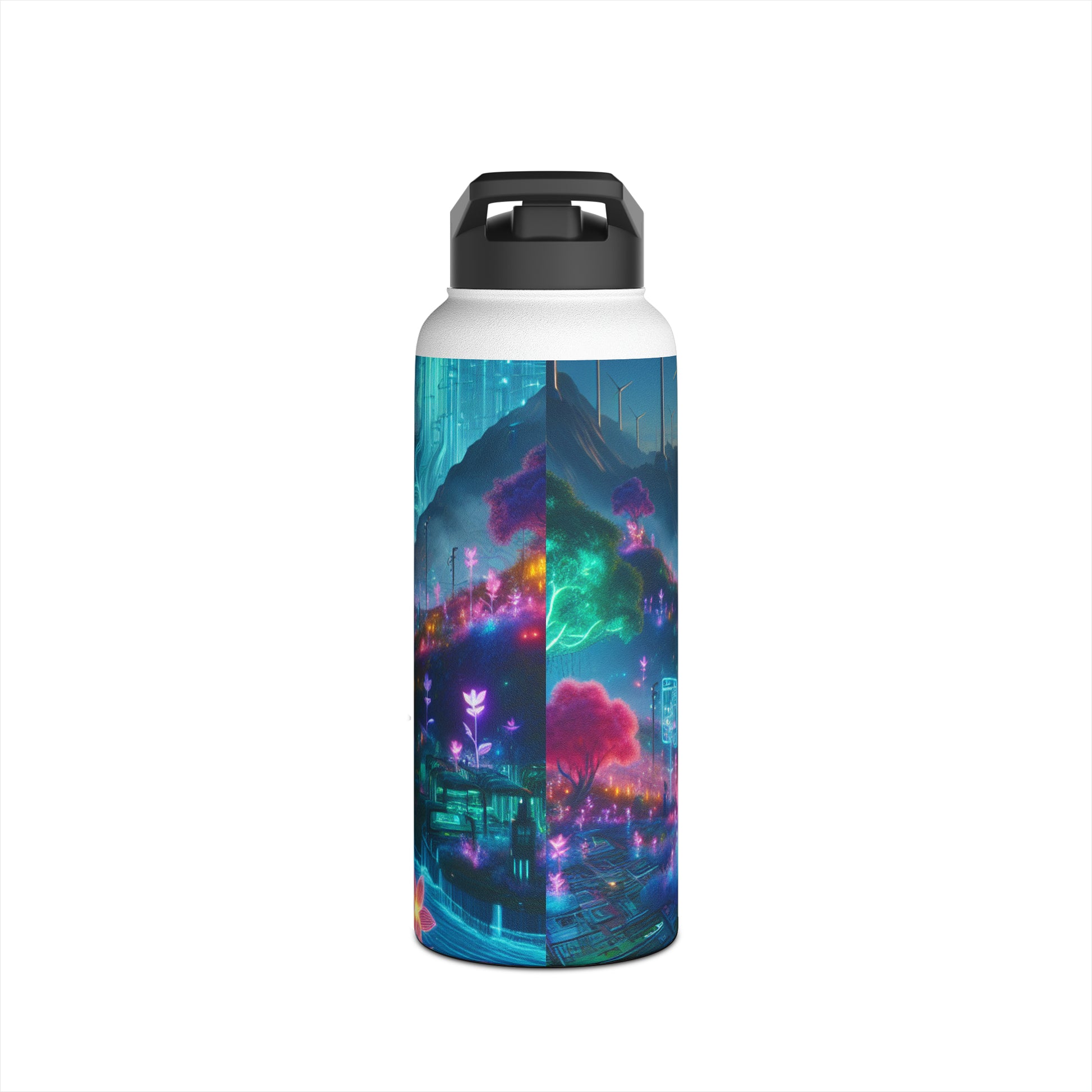 In the cyberpunk world of neon-colored flora and futuristic tech, where nature and technology coexist harmoniously, our Stainless Steel Water Bottle fits right in. Stay connected to both worlds with this sleek and sustainable companion. #cyberpunkvibes #futurism #techandnature #ecofriendlycyberpunk #neonflora #stayconnected #sustainablefuture #fashionforward #advancedcivilization #natureandtechnology