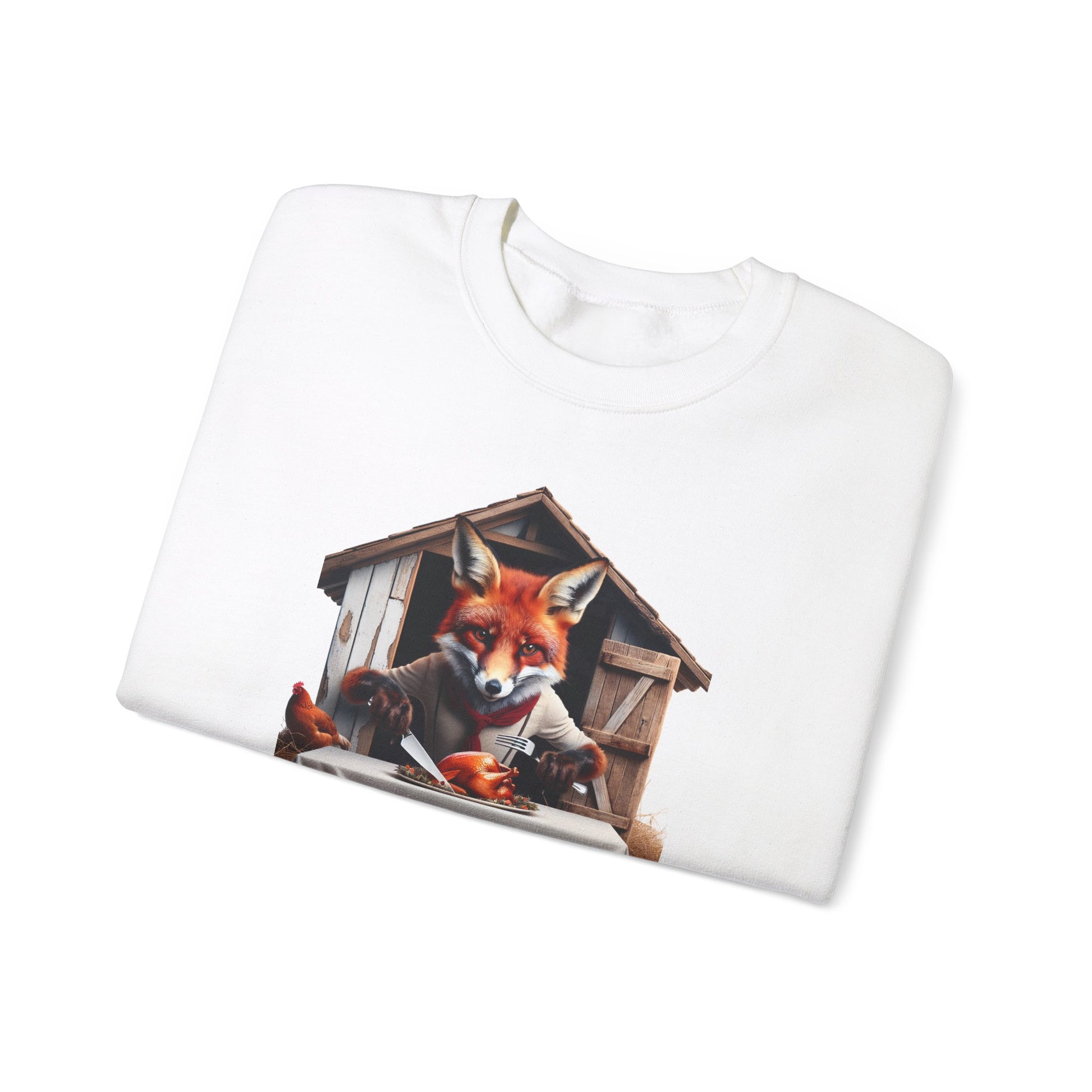 Introducing our "Sly Fox Crewneck" featuring a mischievous red fox in a hen house, complete with a napkin and cutlery. This cozy crewneck adds a touch of whimsy to your wardrobe. Made with soft and durable fabric for ultimate comfort and style. Let your inner fox shine with this unique design! 🦊🍴🐔 #Crewneck #SlyFox #AnimalLovers #StatementPiece #CozyStyle #UniqueDesign #RedFox #FunnyFashion #HenHouse #KnifeAndFork
