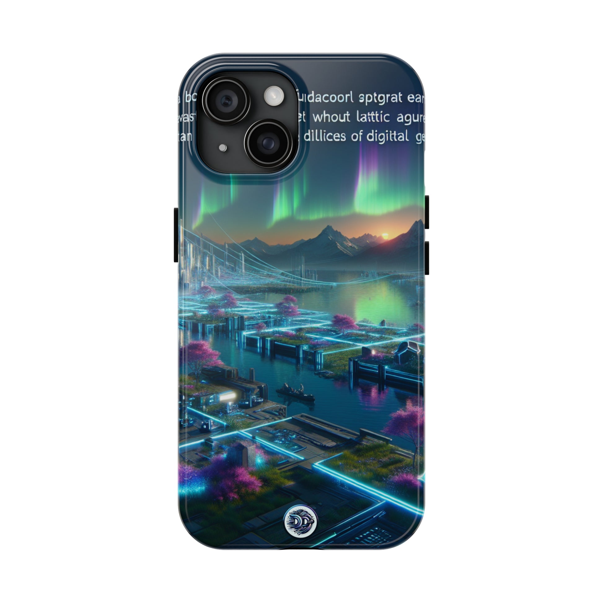 Immerse in a future where tech harmonizes with nature with our Cyberpunk Phone Case. Marvel at the neon flora, futuristic tech, glowing waters, and a sky lit by auroras spanning a vast open space. Not a digital grid in sight. Prep for a journey towards a neon-soaked future where organic meets metallic. #CyberpunkCase #TechNature #NeonDreams #FuturisticAesthetic #GlowingRivers #DigitalLandscape #PhoneCase #TechAccessory #AuroraDesign #AdvancedCivilization.