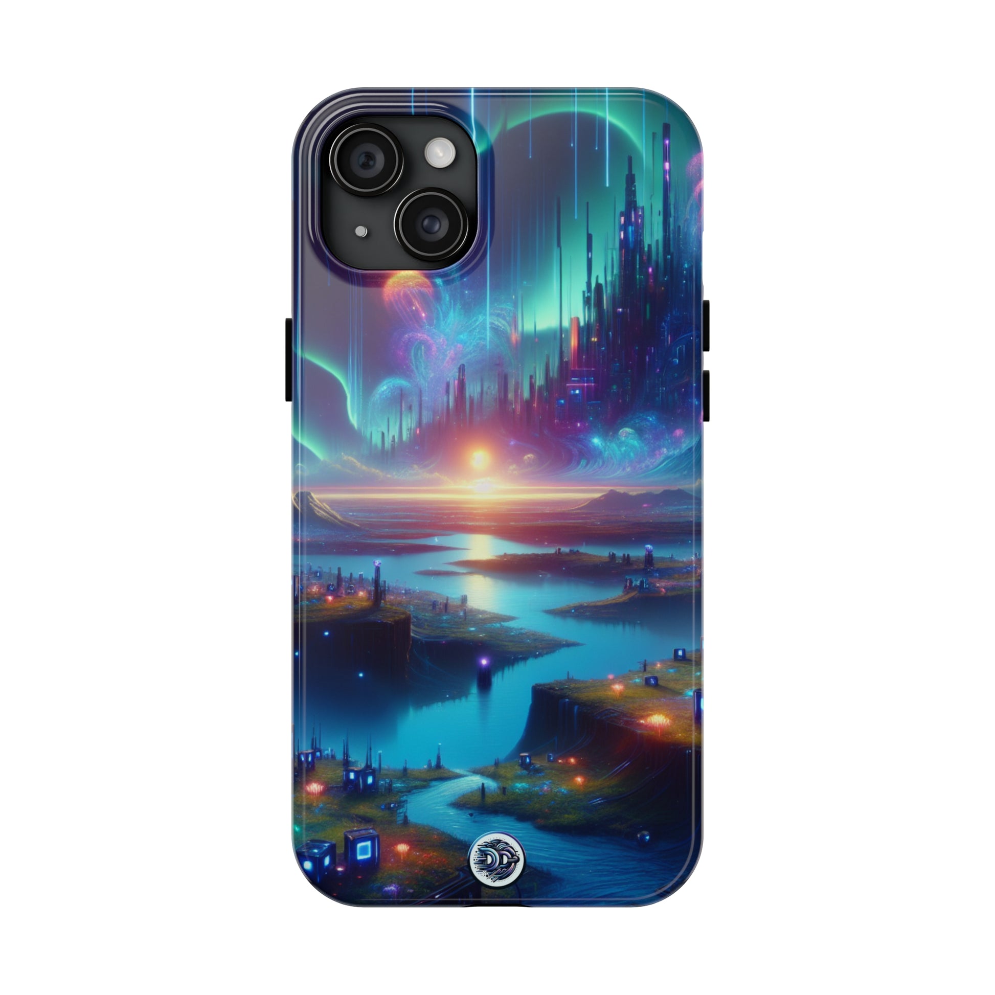 Experience the future with our Cyberpunk Theme Phone Case. Immerse in its digital landscape with vibrant colors, neon flora and futuristic tech, enhancing the harmony between civilization and nature. Void of rigid digital grids, it showcases an aurora-lit sky, glowing bodies of water and emphasizes fluid designs. #PhoneCase #Cyberpunk #DigitalLandscape #NeonFlora #FuturisticTech #NatureHarmony #AuroraSky #GlowingWater #FluidDesigns #AdvancedCivilization