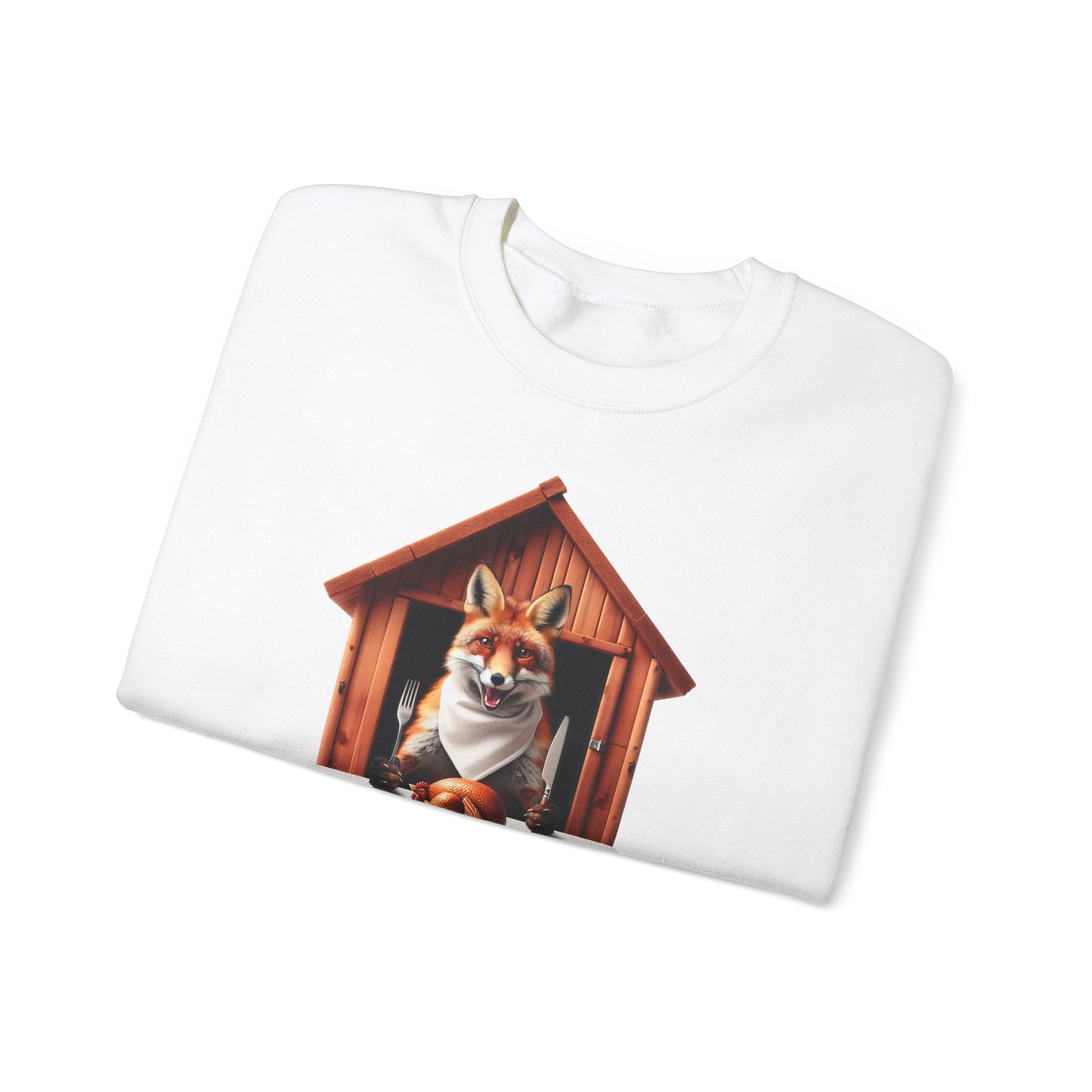 Introducing our cozy crewneck featuring a mischievous red fox in a hen house. This cheeky fox is dressed to impress, wearing a napkin and holding a knife and fork. This design is sure to turn heads and spark conversations. Embrace the unexpected with this unique and playful piece. #FoxInHenHouse #WhimsicalFashion #AnimalArt #Crewneck #PlayfulDesign #ConversationStarter #UniqueStyle #CozyApparel #FunnyFox #StatementPiece