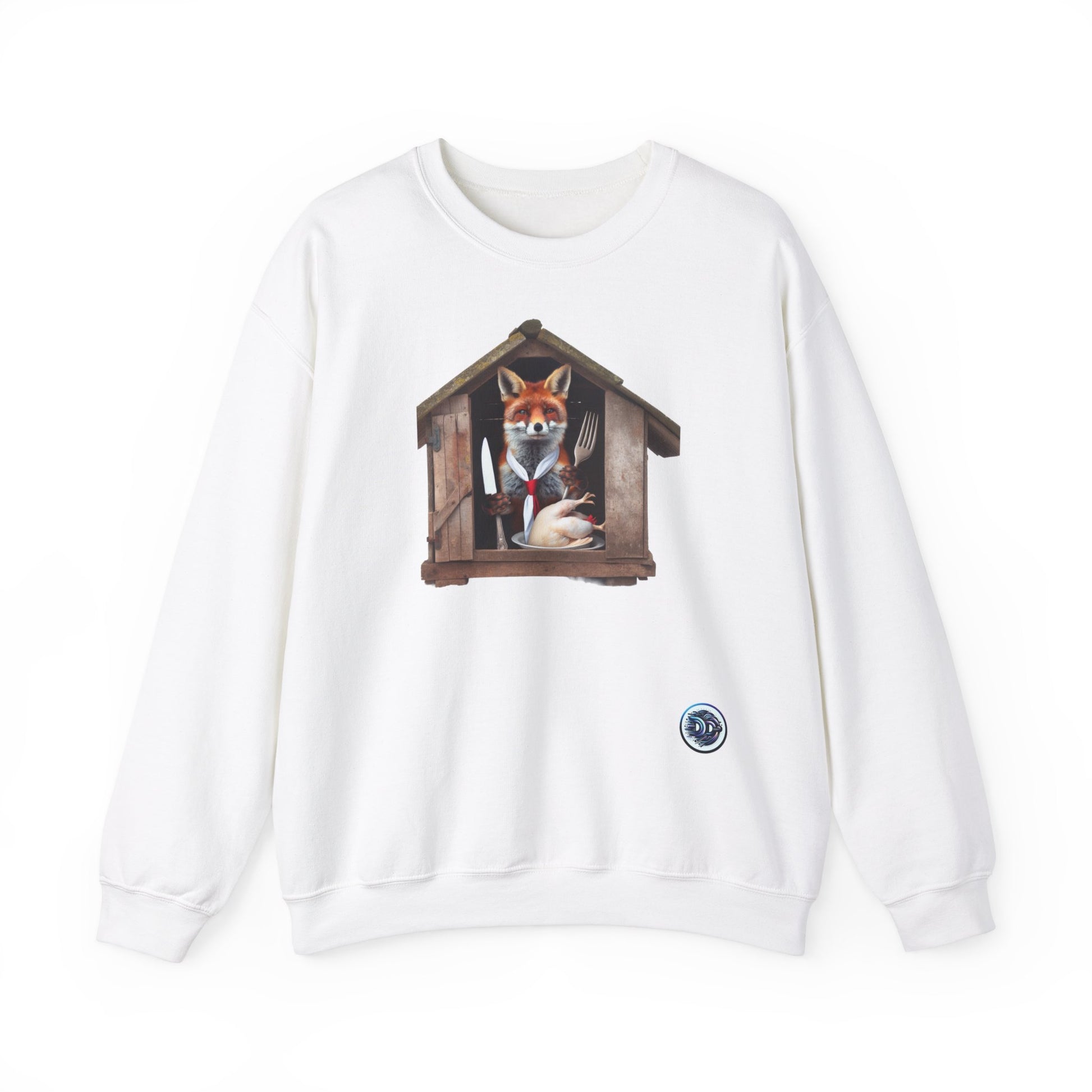 Introducing our Fox in the Hen House Crewneck! This cozy crewneck features a whimsical image of a mischievous red fox donning a napkin and holding a knife and fork in a bustling hen house. The intricate details of the fox and hen house are beautifully highlighted against a crisp white background. Get ready to add a touch of charm and playfulness to your wardrobe with this unique and eye-catching piece. #FoxInTheHenHouse #CrewneckSweater #AnimalArt #WhimsicalFashion #StatementPiece #CozyAndChic #UniqueDesign #FashionForward #MustHave #ShopNow