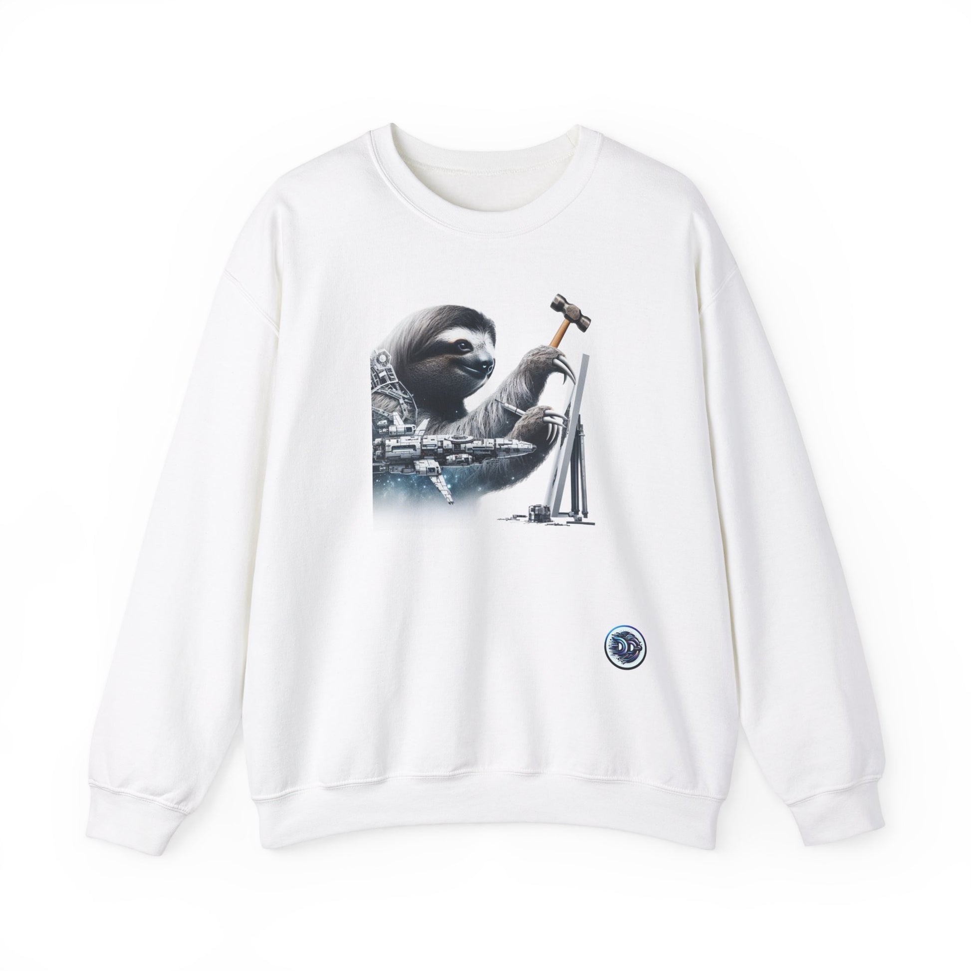 Introducing our Crewneck featuring a futuristic space-bound sloth fixing his spaceship with a massive hammer. The determined yet relaxed sloth exudes charm as he works on the sleek, high-tech spacecraft. This unique design is sure to turn heads and spark conversations. #SpaceSloth #FuturisticFashion #SlothInSpace #SpaceShipStyle #HumorousHammer #UniqueCrewneck #HighTechDesign #OutofThisWorld #FashionableSloth #SlothAdventure
