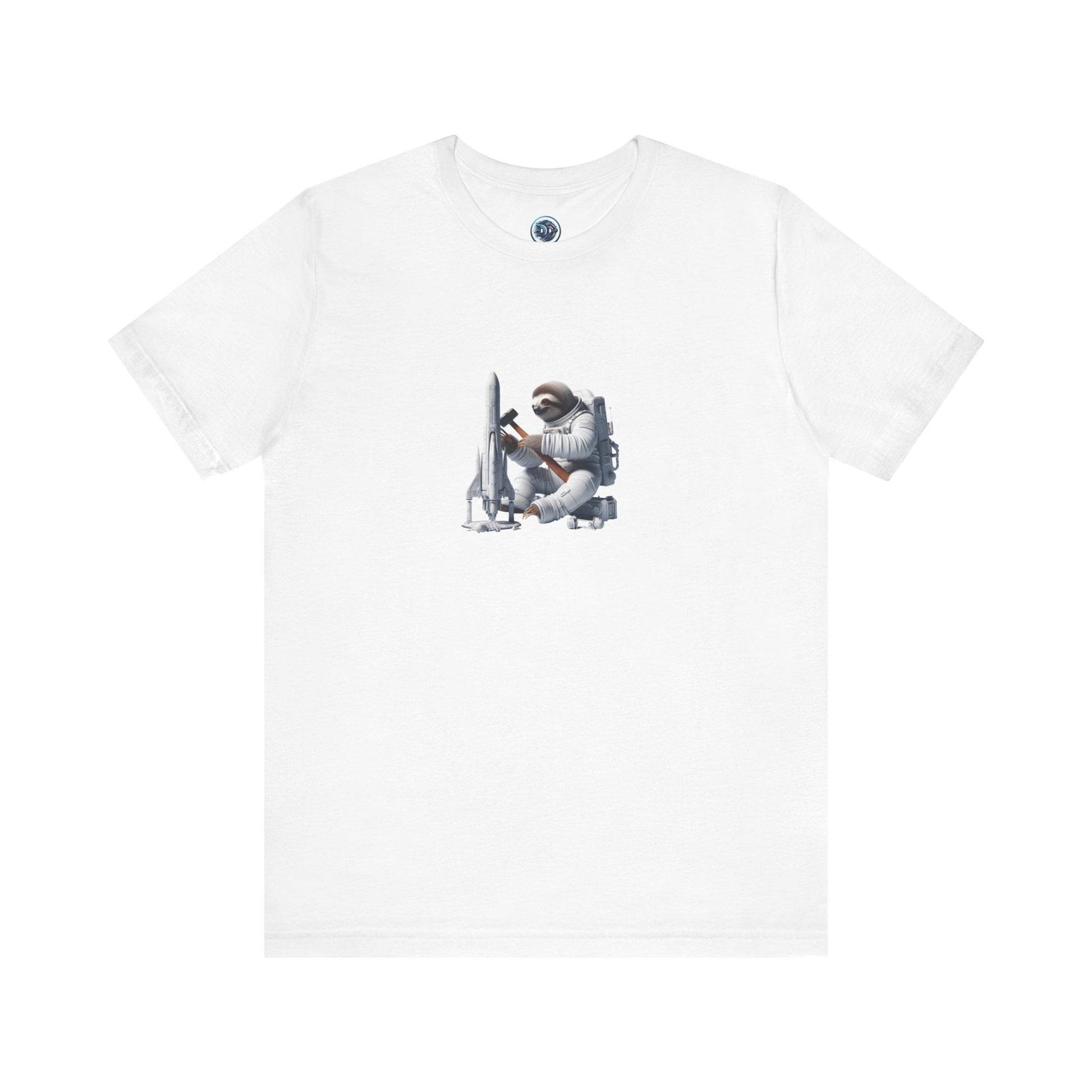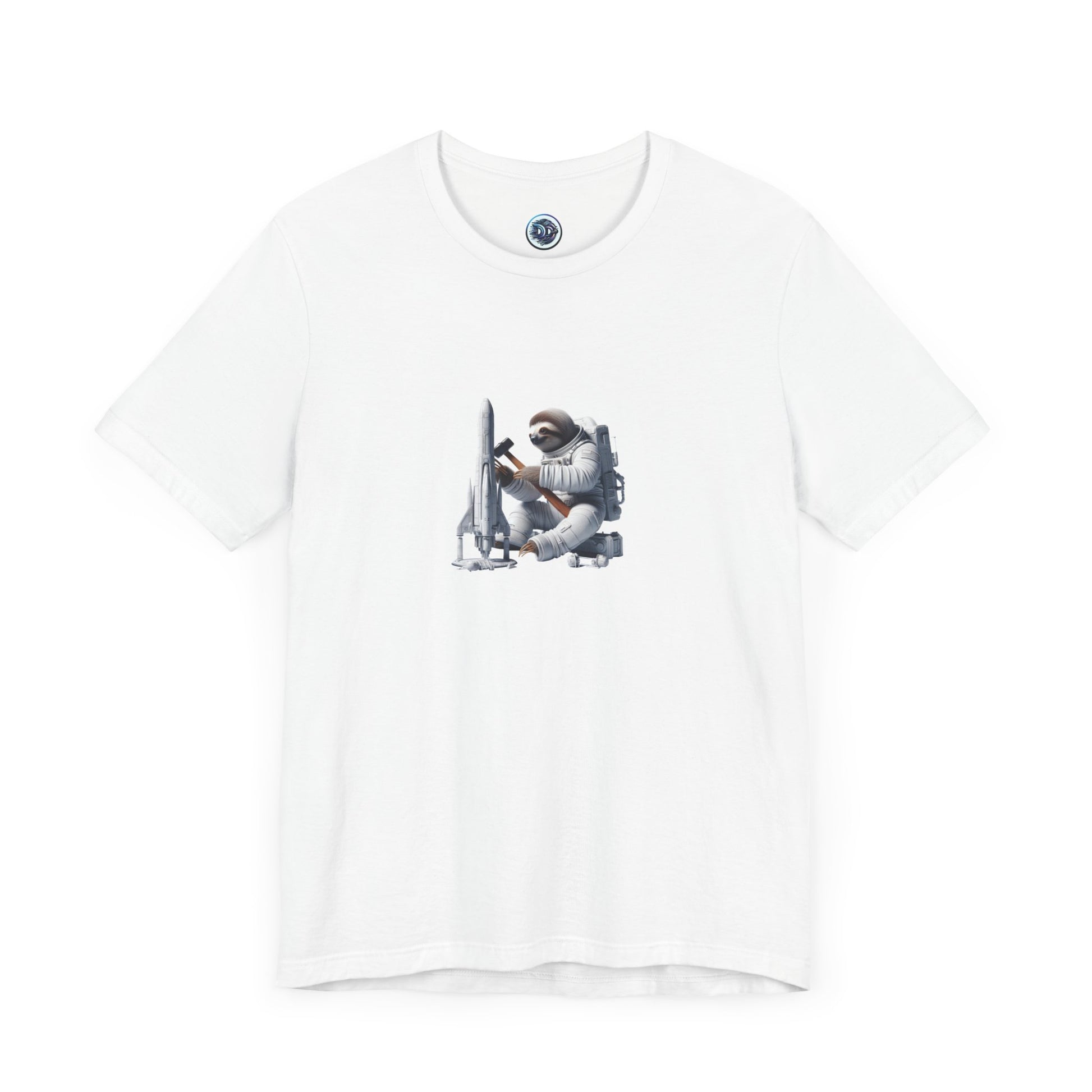 Introducing our one-of-a-kind t-shirt! Dive into a world where a futuristic space-bound sloth confidently repairs his spaceship with an oversized hammer. The sleek design of the spaceship hints at advanced technology while the humorous touch of the giant tool adds a twist. Let this determined yet laid-back sloth add a fun and unique vibe to your wardrobe! #SlothInSpace #FuturisticFashion #HumorousHammer #SpaceOddity #SlothStyle #OutofThisWorld #UniqueTee #FashionFinds #SlothLife #SpaceAdventure