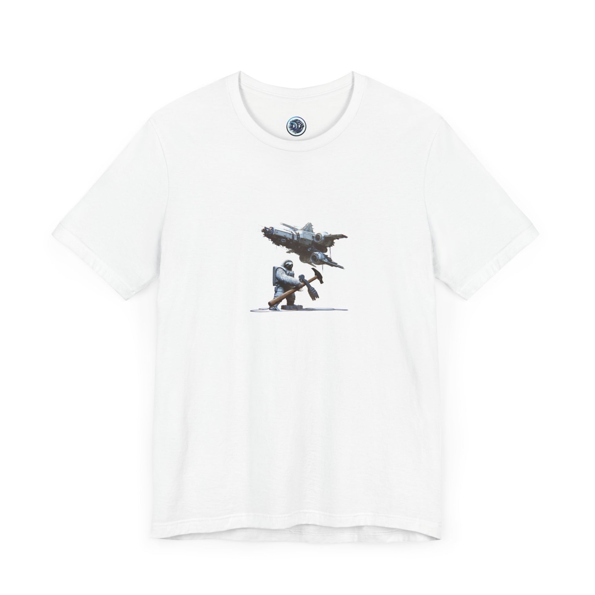 Introducing our exclusive "Sloth in Space" T-shirt! Dive into a whimsical world of futuristic adventures as a determined sloth fixes his sleek spaceship with an unusually large hammer. His relaxed yet focused expression embodies the perfect blend of determination and chill. Get ready to blast off into the galaxy with this unique and hilarious design! #SpaceSloth #FuturisticFashion #AdventureAwaits #HumorousDesign #GalacticTee #SlothLife #SpaceHammer #SpaceshipStyle #UniqueTShirt #OutofthisWorld
