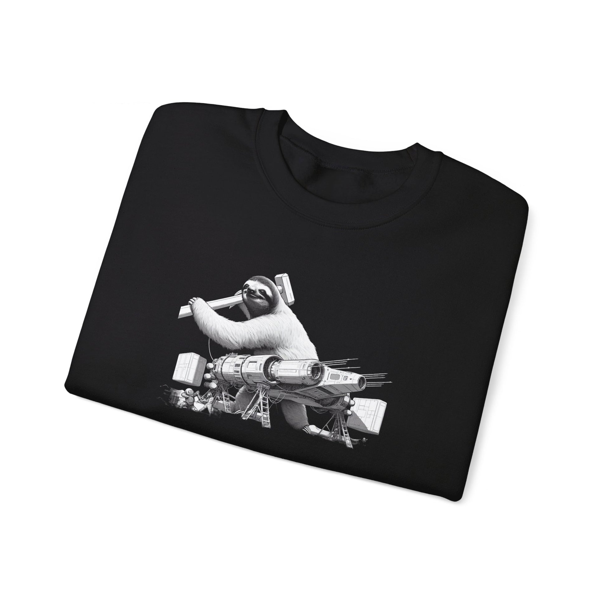 Introducing our "Spacebound Sloth Crewneck"! Step into a world where the future meets humor. This cozy crewneck features a futuristic space-bound sloth effortlessly wielding an unusually large hammer to fix his sleek, advanced spaceship. With a determined yet relaxed demeanor, the sloth embodies the perfect blend of tech and wit. #SpaceSloth #FuturisticFashion #HumorousDesign #CozyCrewneck #UniqueStyle #SpaceAdventure #FunnyFashion #TechyTrend #OutofthisWorld #SlothStyle