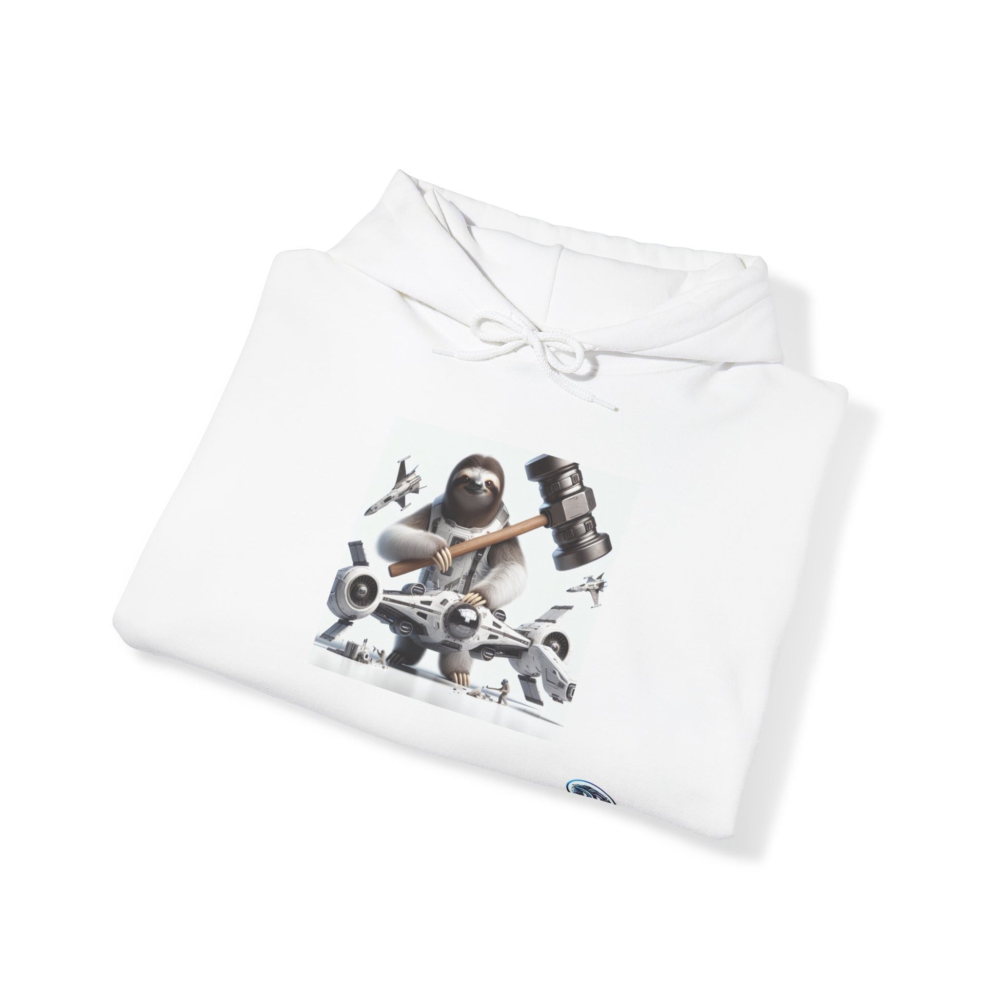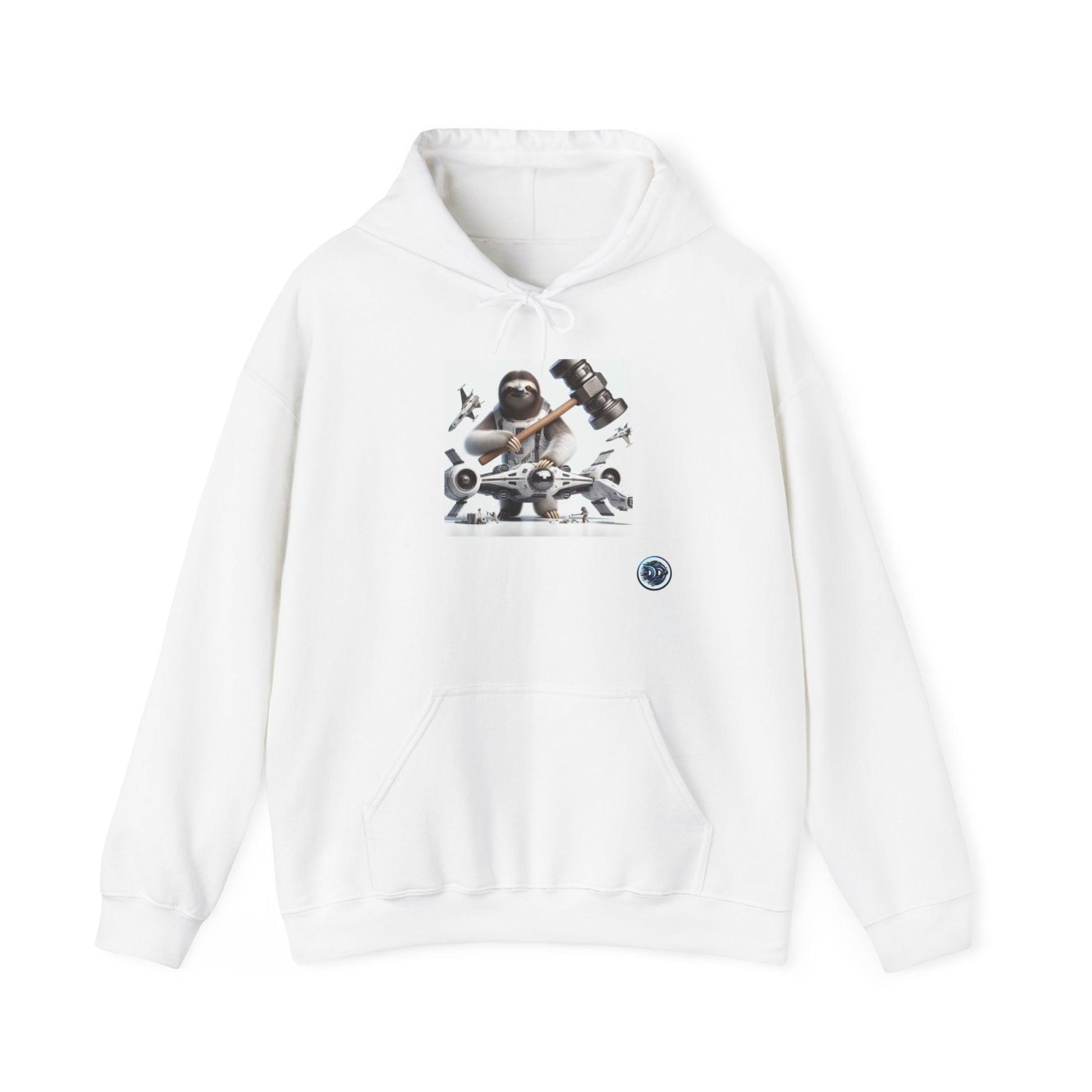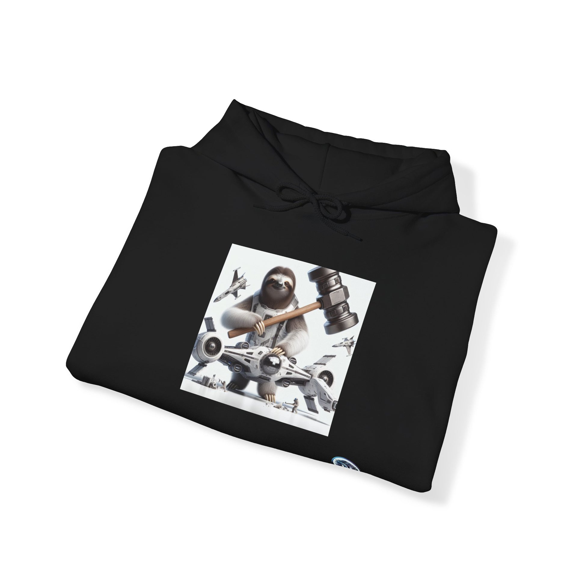 Introducing our unique hoodie adorned with a captivating image of a futuristic space-bound sloth fixing his spaceship with an unusually large hammer. The sloth exudes a determined yet relaxed demeanor, showcasing sleek, advanced spaceship designs. Every detail finely rendered to tell a quirky story. Embrace comfort and creativity in style with this one-of-a-kind piece. #hoodie #sloth #space #futuristic #spaceship #hammer #humor #creativity #unique #fashion