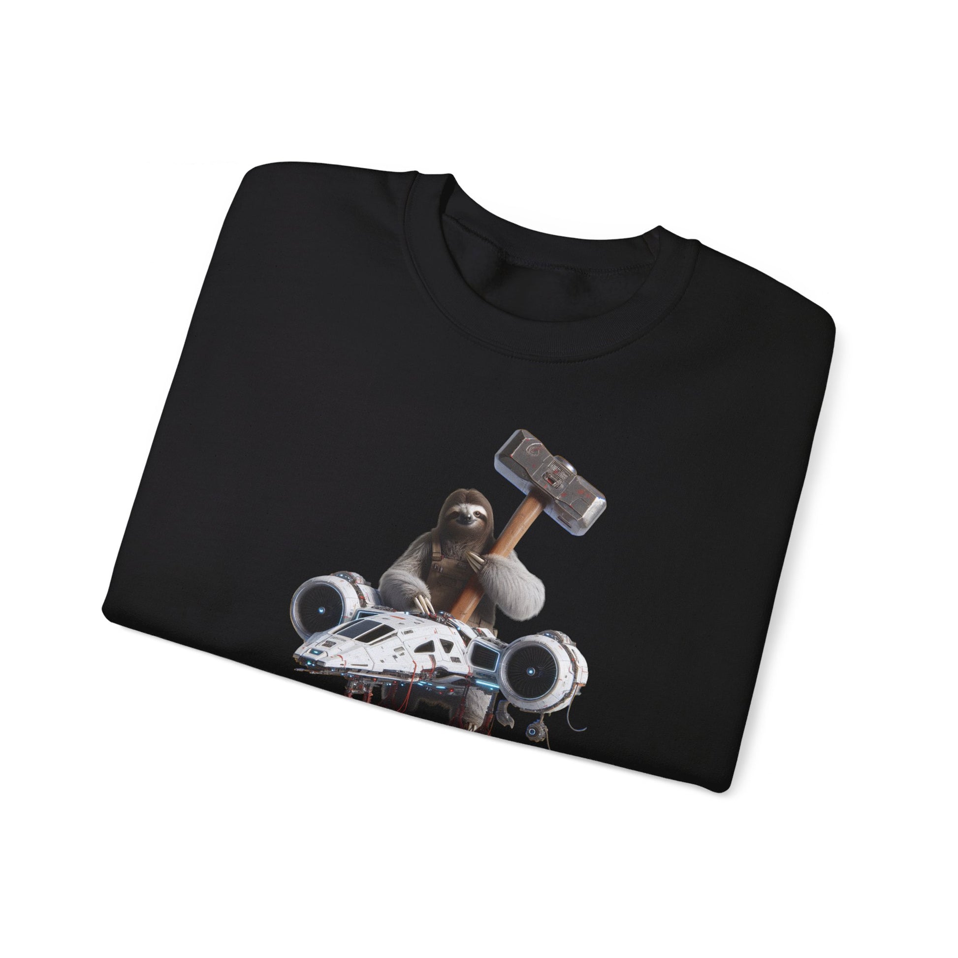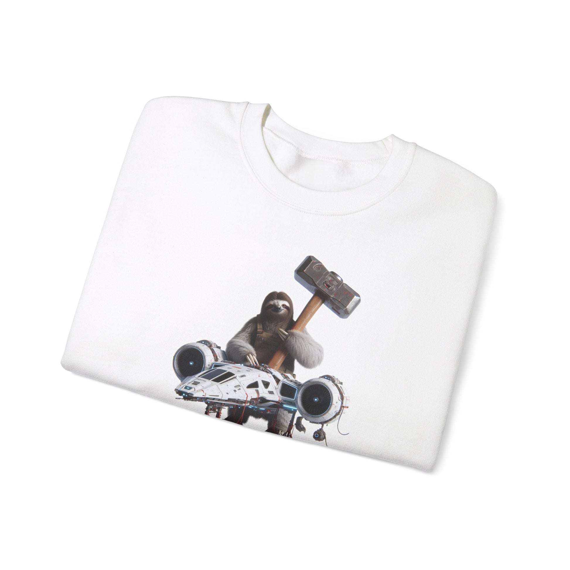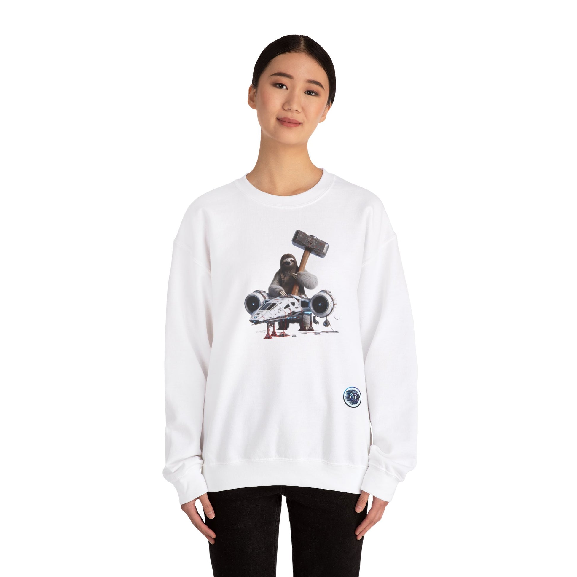 Introducing our Crewneck featuring an exclusive design! Picture a futuristic space explorer - a sloth, casually fixing his advanced spaceship with an oversized hammer. Look closely to see the determined yet relaxed expression on his face. This design is a perfect blend of high-tech innovation and subtle humor. Every detail is finely rendered against a pristine white backdrop. Get ready to embark on a cosmic journey with this unique crewneck!