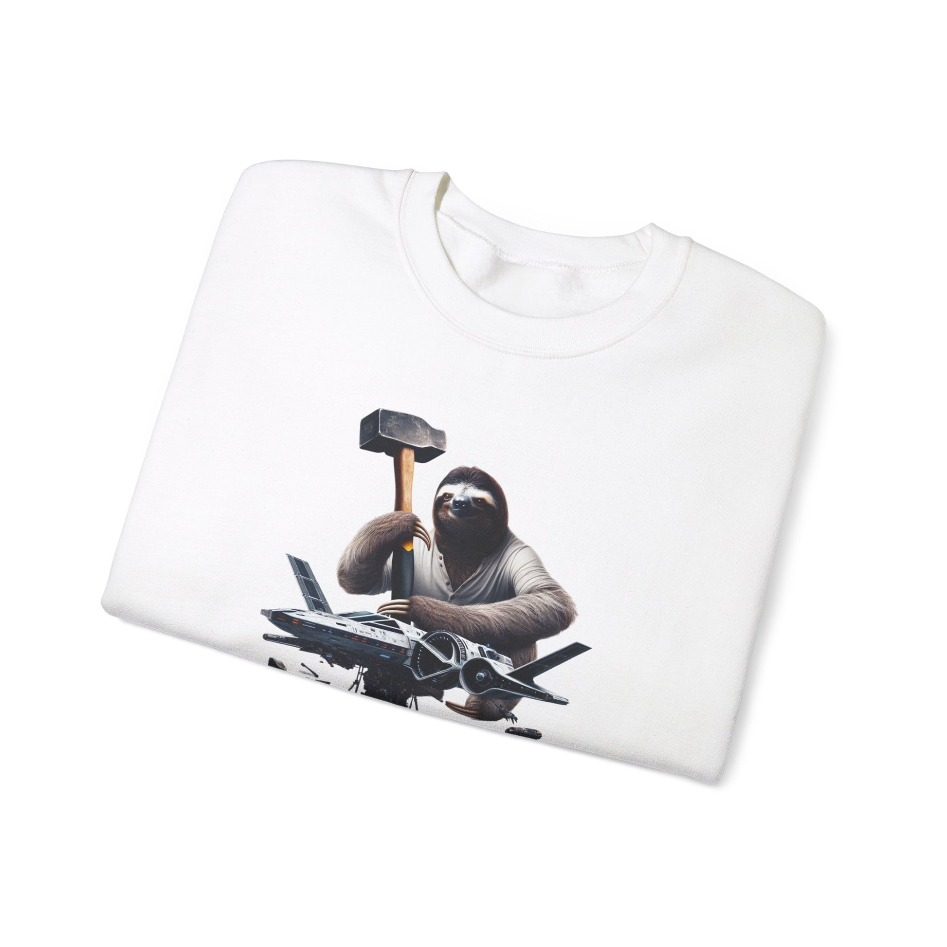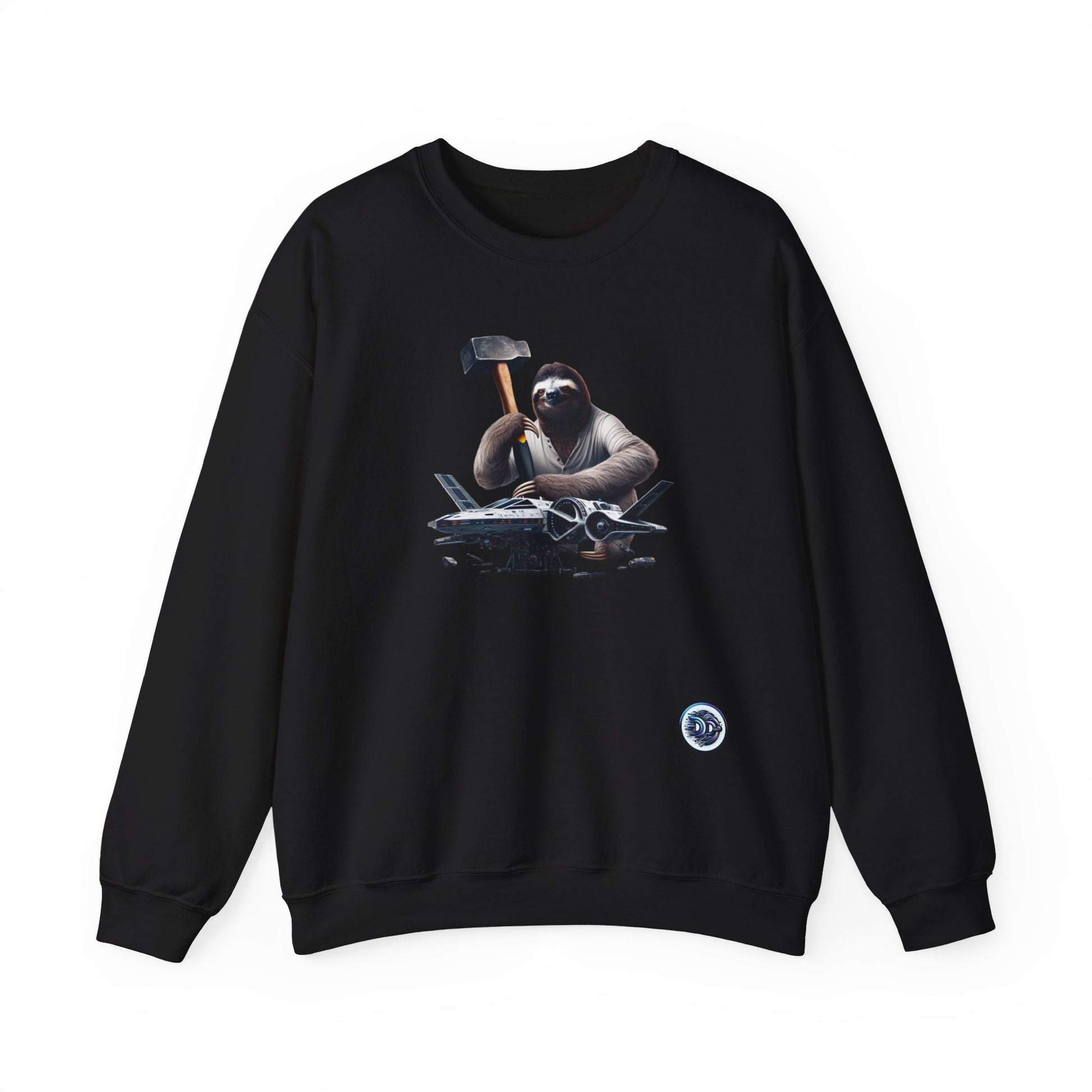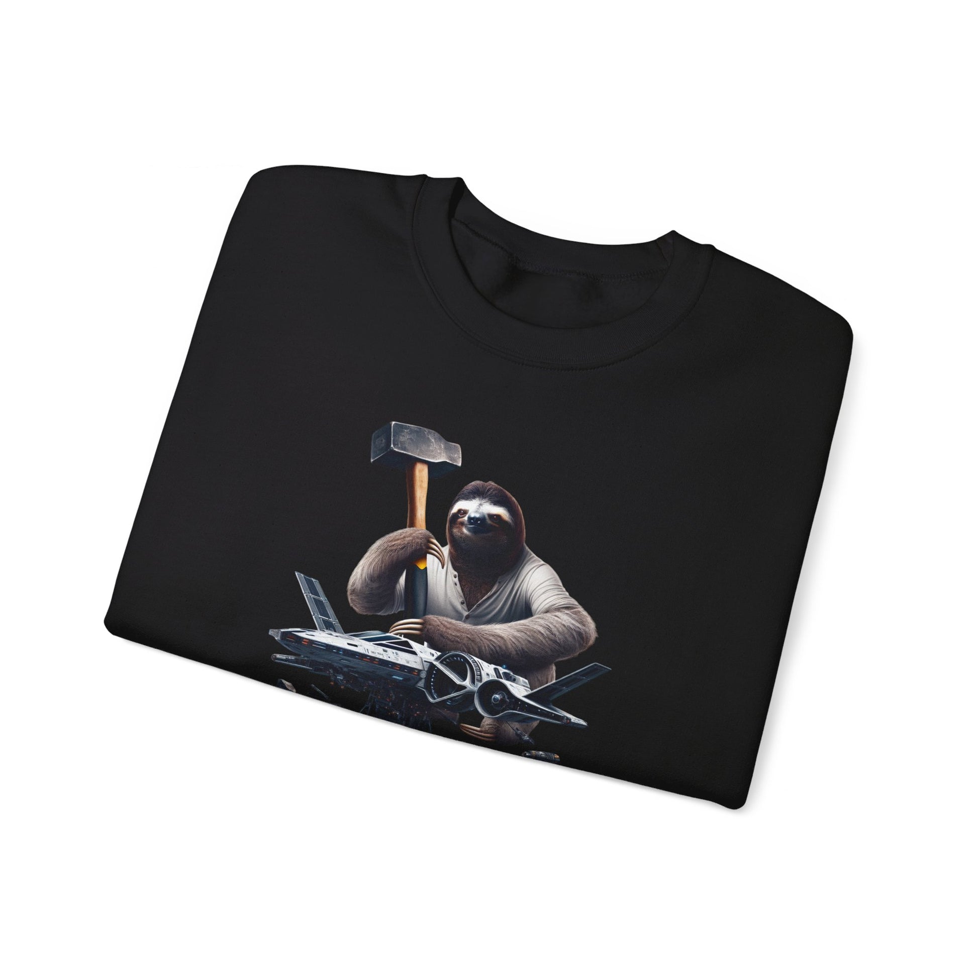Introducing our Futuristic Space Sloth Crewneck! This unique design showcases a determined yet relaxed sloth fixing his sleek, high-tech spaceship with an unusually large hammer. The intricate details bring this scene to life, making it a must-have for space and sloth enthusiasts alike. #SpaceSloth #FuturisticFashion #OutofthisWorld #SlothLife #UniqueDesign #HighTechStyle #CrewneckLove #HumorousTwist #LimitedEdition #GetYourSlothOn