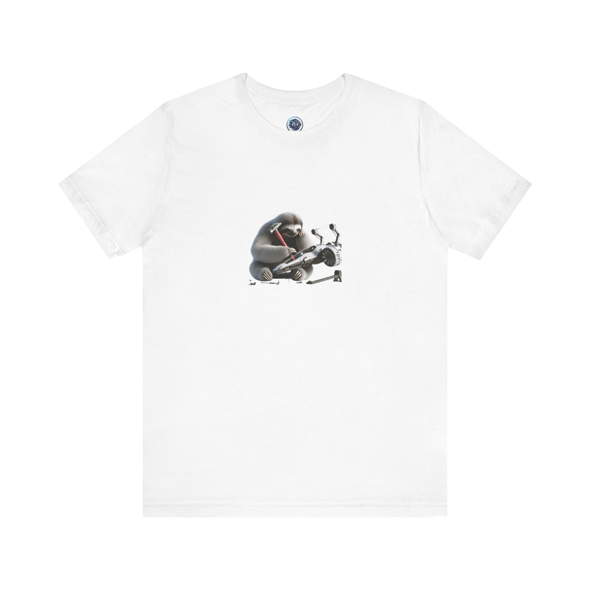 Introducing our Galactic Fix-It Sloth T-shirt! Join this determined yet relaxed sloth as he expertly wields a hilariously oversized hammer to repair his sleek, high-tech spaceship amidst the stars. This detailed design on a white background captures a whimsical space adventure in one glance. Get ready to launch into fun with this unique tee! 🚀👕 #GalacticFixItSloth #SpaceAdventure #SlothLove #SpaceshipDesign #FuturisticFashion #HammerTime #FunTees #UniqueDesigns #SlothLife #GalacticJourney
