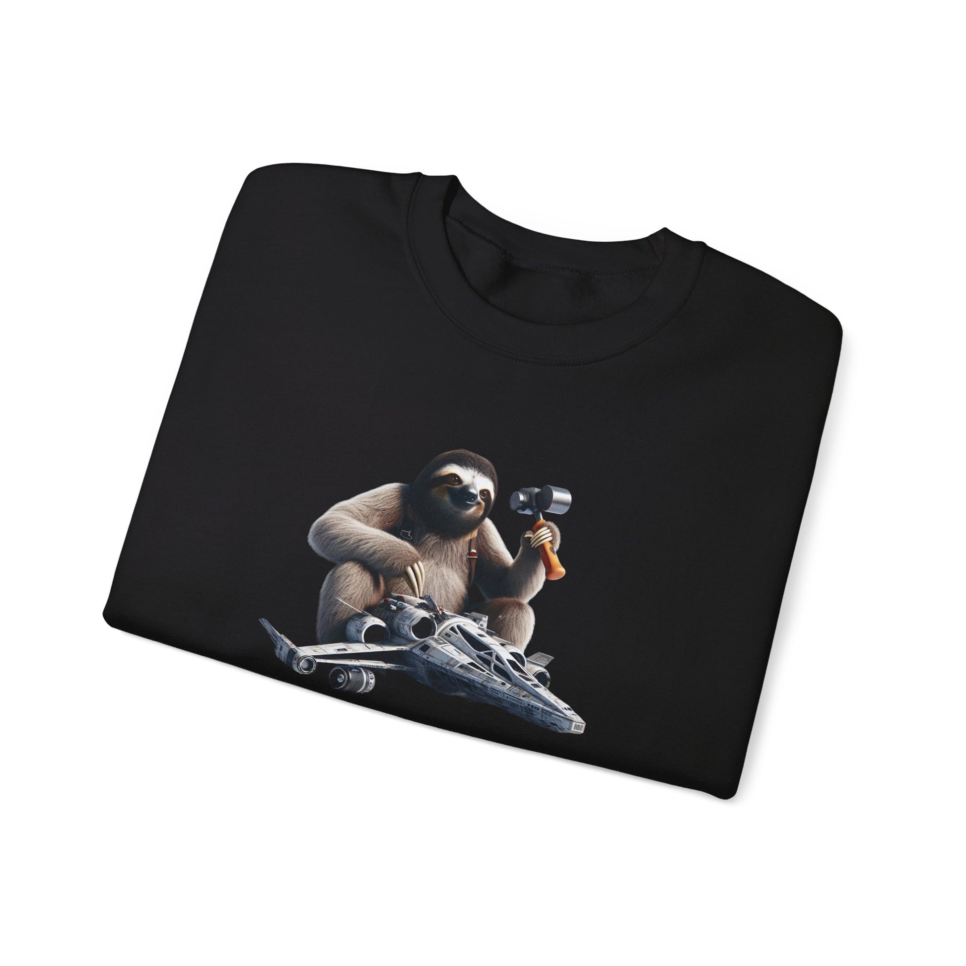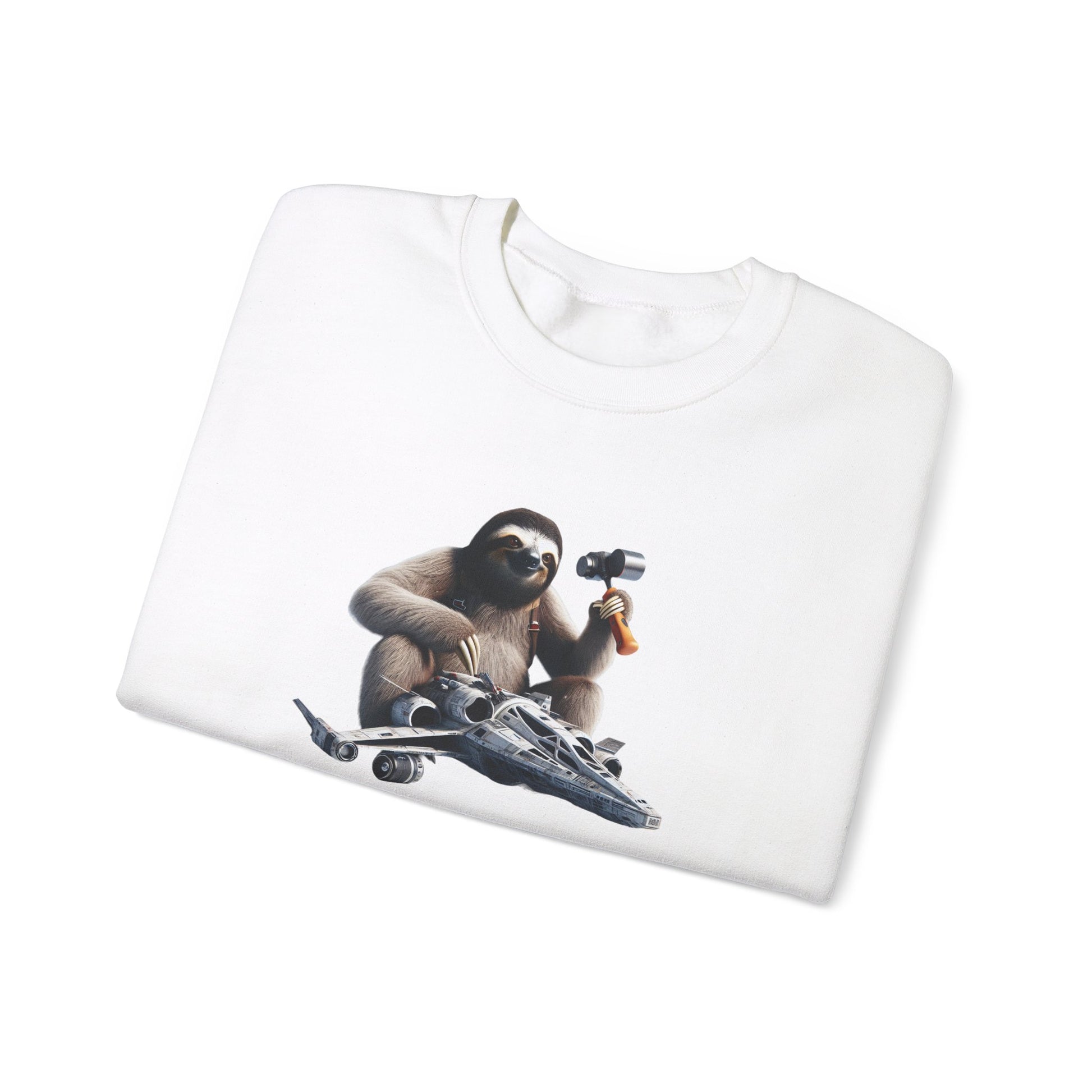 Introducing our Crewneck: A surreal fusion of sci-fi and humor! Step into a whimsical world where a futuristic sloth masterfully repairs his high-tech spaceship with an unexpectedly large hammer. The intricately detailed design captures the sloth's determination amidst advanced spacecraft features and a touch of quirky charm. Perfect for those who appreciate a unique blend of imagination and style. #Crewneck #SciFiFashion #SlothAdventure #HumorousDesign #UniqueStyle #HighTechHumor #SurrealFashion #CreativeApparel #FuturisticVibes #QuirkyChic
