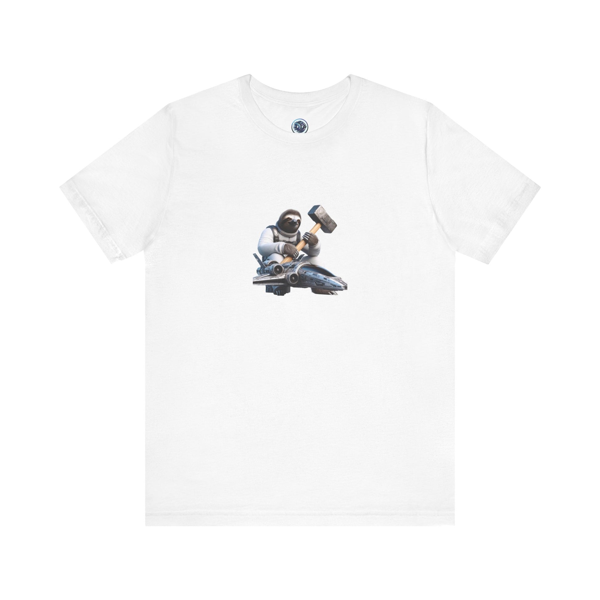 Introducing our "Spaceship Repair Sloth" tee! Imagine a futuristic scene: a determined yet relaxed sloth fixing his sleek, high-tech spaceship with an unusually large hammer. This design is quirky, fun, and finely rendered for maximum impact. Perfect for space enthusiasts and animal lovers alike. Get yours now and stand out from the crowd! #SlothInSpace #FuturisticFashion #SpaceHumor #UniqueDesign #HighTechSloth #SpaceshipRepair #FunnyTshirt #QuirkyStyle #AnimalLovers #StandOutFromTheCrowd