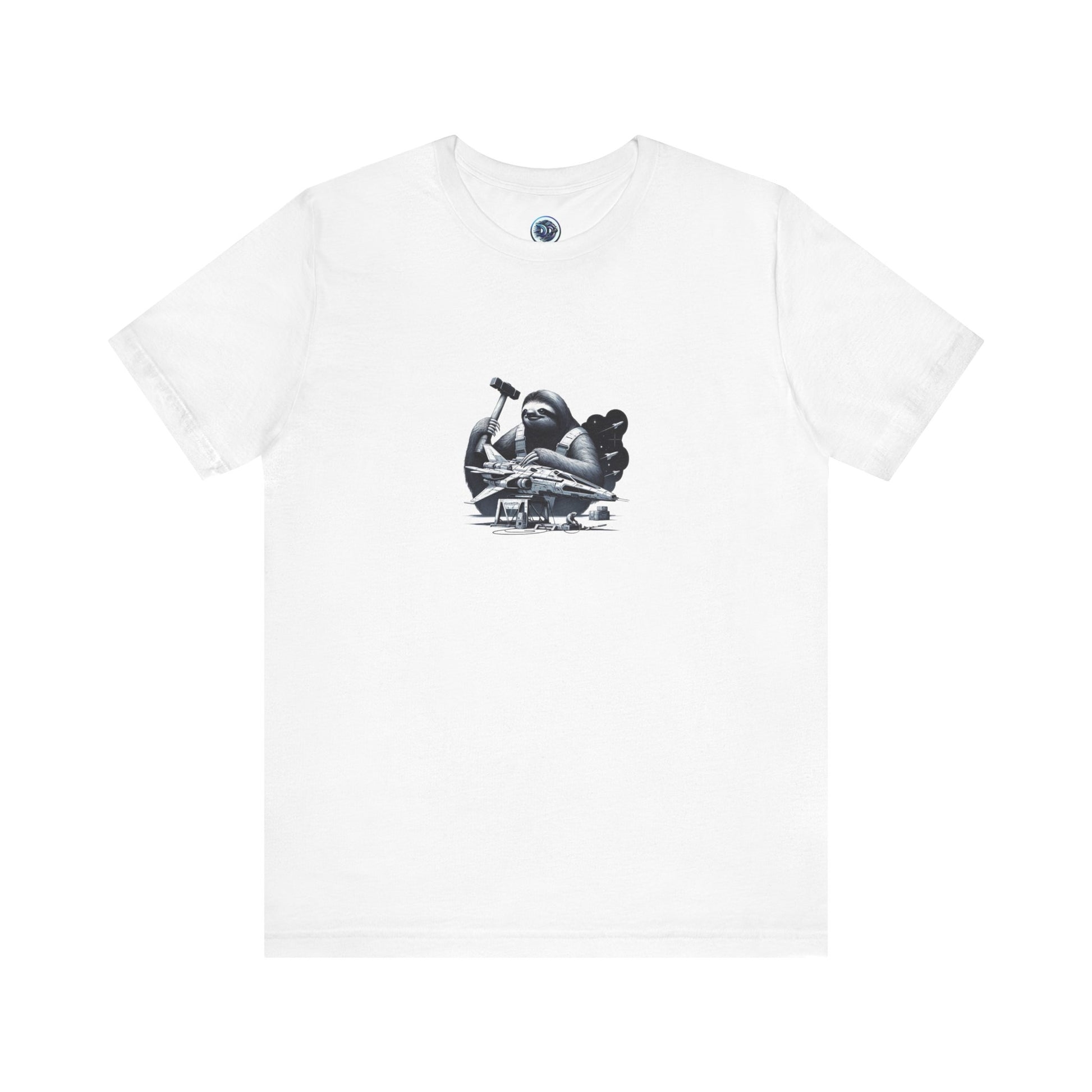 Introducing the Space Sloth T-Shirt - a fusion of whimsy and technology! This unique design depicts a futuristic sloth fixing its sleek spaceship with an oversized hammer, exuding determination and relaxation. The intricate details bring the scene to life against a pristine white backdrop. Get ready to showcase your love for the extraordinary! #SpaceSloth #FuturisticFashion #TechTrend #HumorousDesign #UniqueStyle #SlothLove #HammerTime #GalacticGlam #FashionForward #SpaceBound