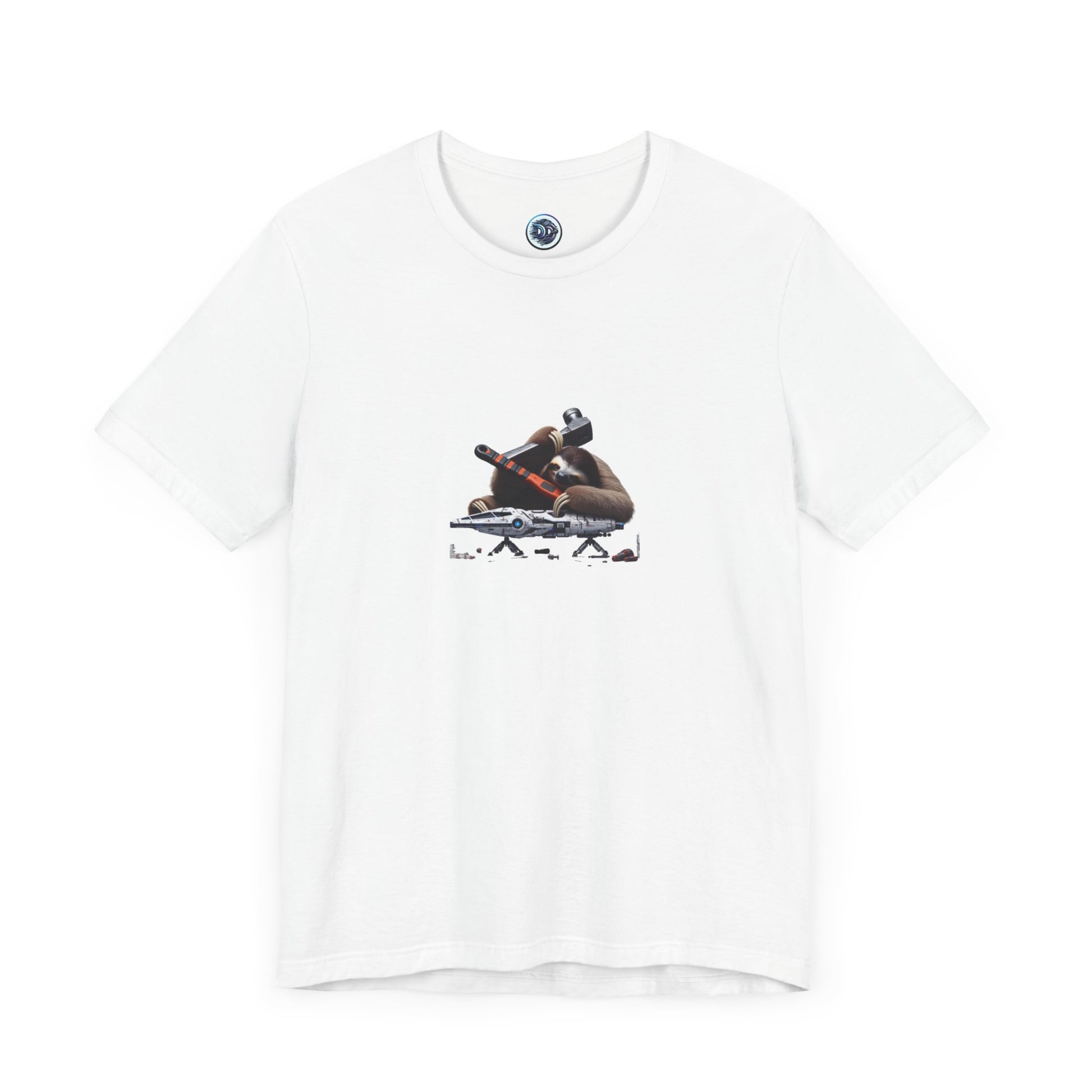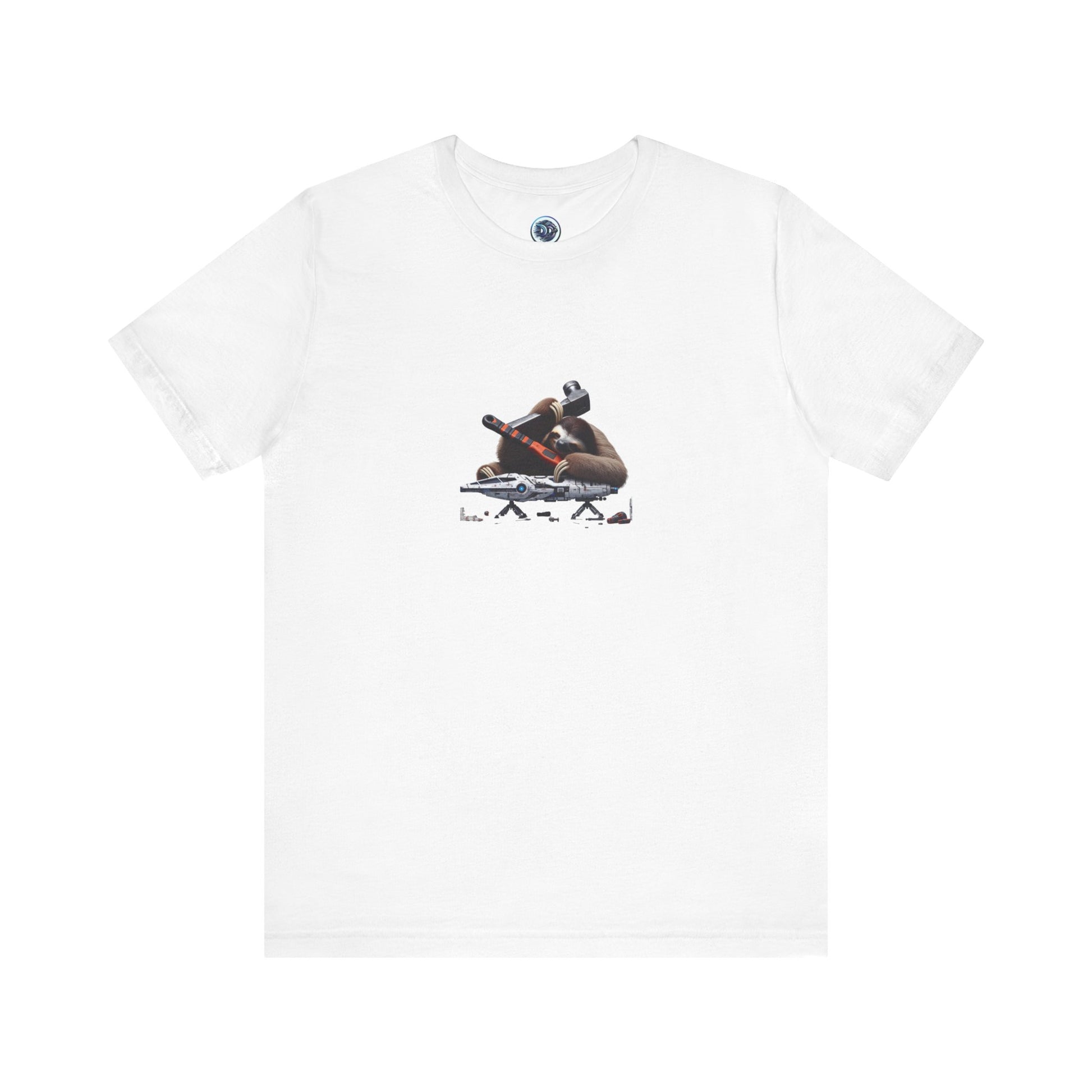 Introducing our "Space Sloth Repair" t-shirt! Witness a sloth in space, tackling spaceship repairs with an oversized hammer, blending determination and relaxation flawlessly. Our fine art design beautifully captures this whimsical scene on a crisp white tee. Grab yours now! #SpaceSloth #SlothInSpace #FuturisticFashion #FunnyTshirt #SpaceHumor #SlothLife #HammerTime #IntergalacticStyle #UniqueDesign #OutofthisWorld