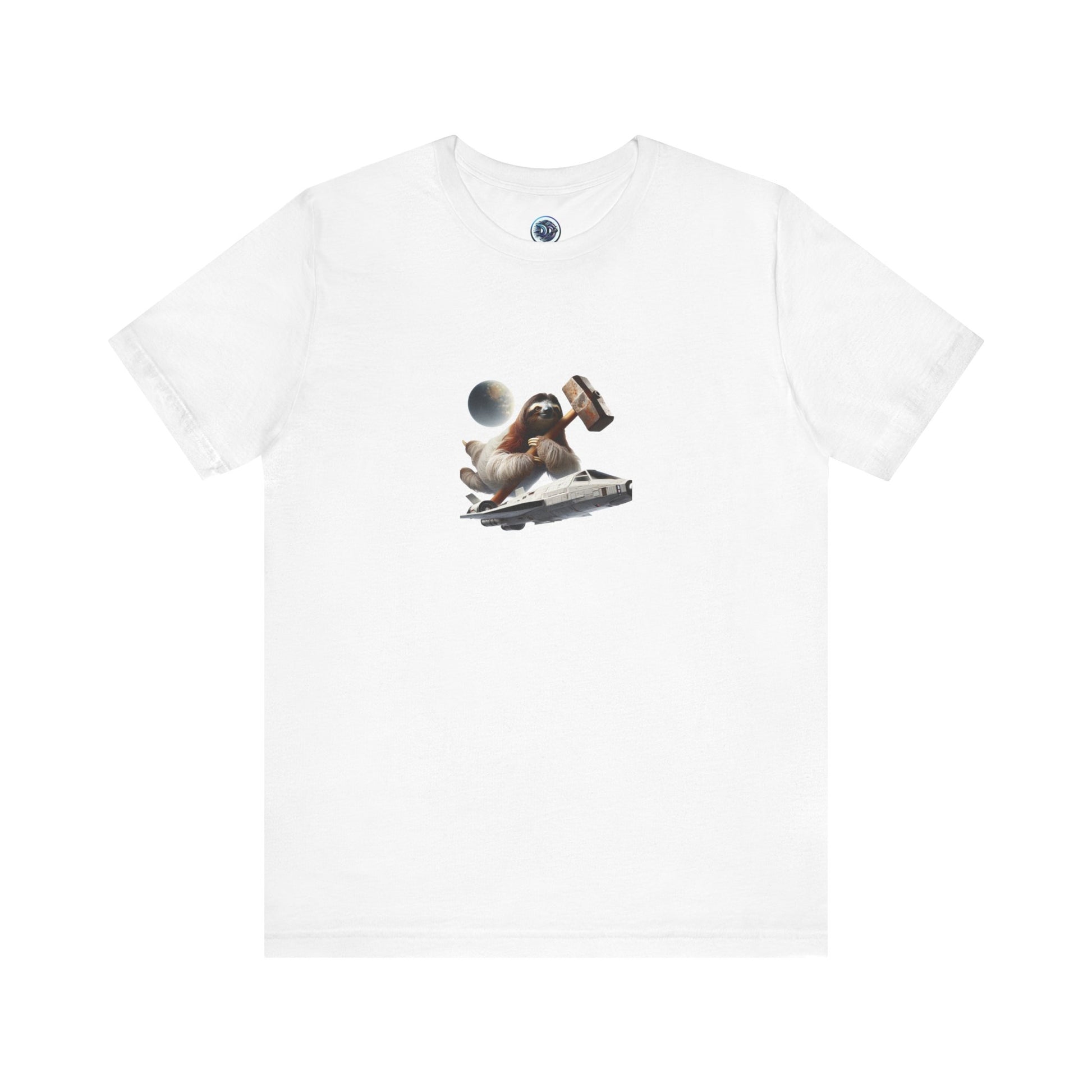 Introducing our exclusive "Space-bound Sloth" t-shirt! Witness a determined yet relaxed sloth fixing their sleek, futuristic spaceship with an unusually large hammer. The perfect blend of determination, humor, and cutting-edge technology! #SlothInSpace #FuturisticFashion #HumorousDesign #UniqueTee #SpaceSlothAdventures #FunnyIllustration #ScienceFictionStyle #SlothfulInnovations #GalacticHammer #SlothFashionista