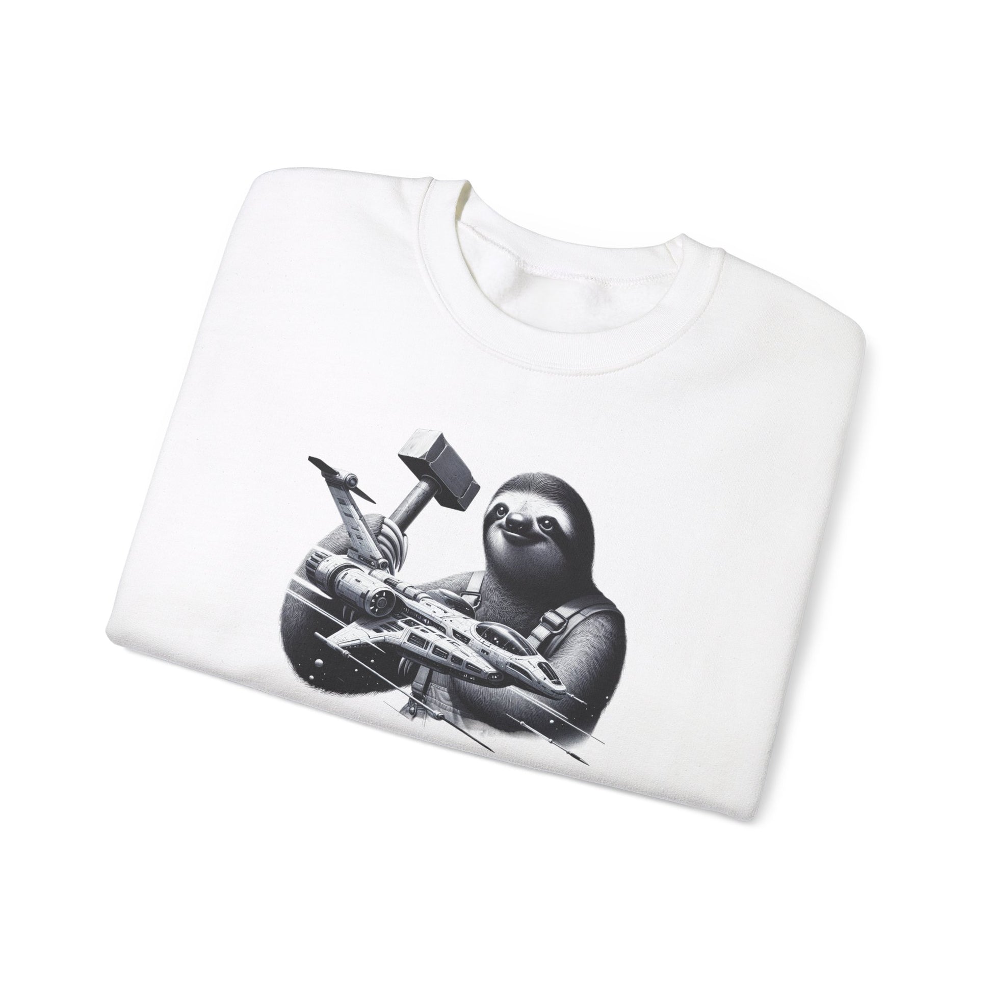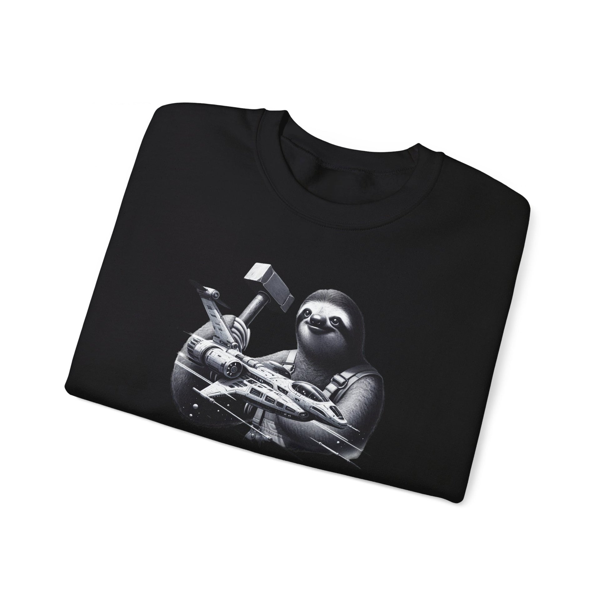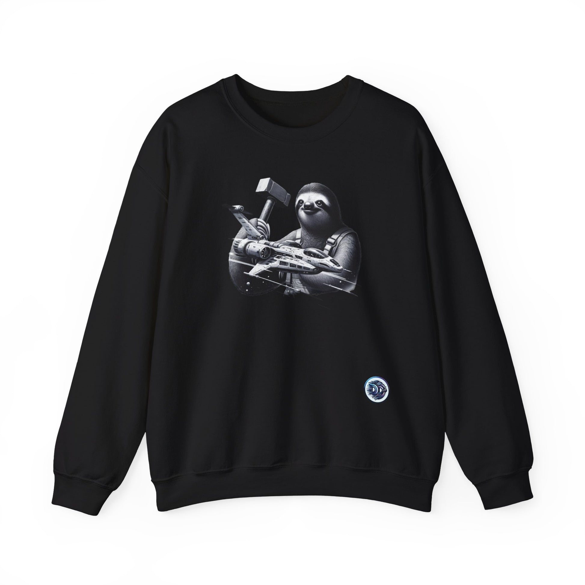 Introducing our exclusive crewneck featuring a futuristic space-bound sloth fixing his spaceship with an unusually large hammer. The determined yet relaxed sloth, sleek high-tech spaceship, and humorous oversized tool are finely rendered against a white backdrop. Get ready for an out-of-this-world style statement that's perfect for all space enthusiasts! #futuristicfashion #spaceadventure #funnysloth #sleekdesigns #outerworldly #uniquefashion #humorous #spacesloth #crewneck #highfashion