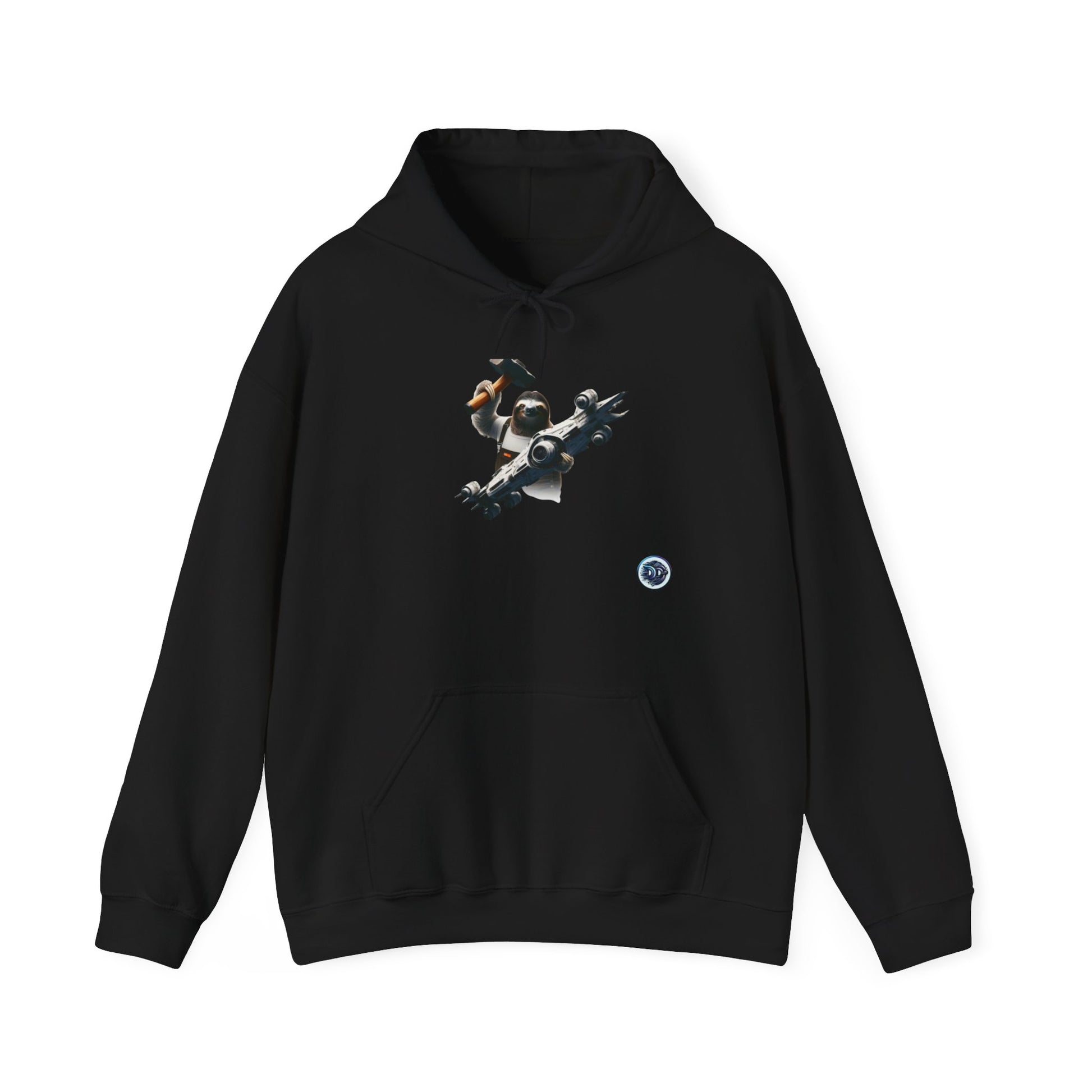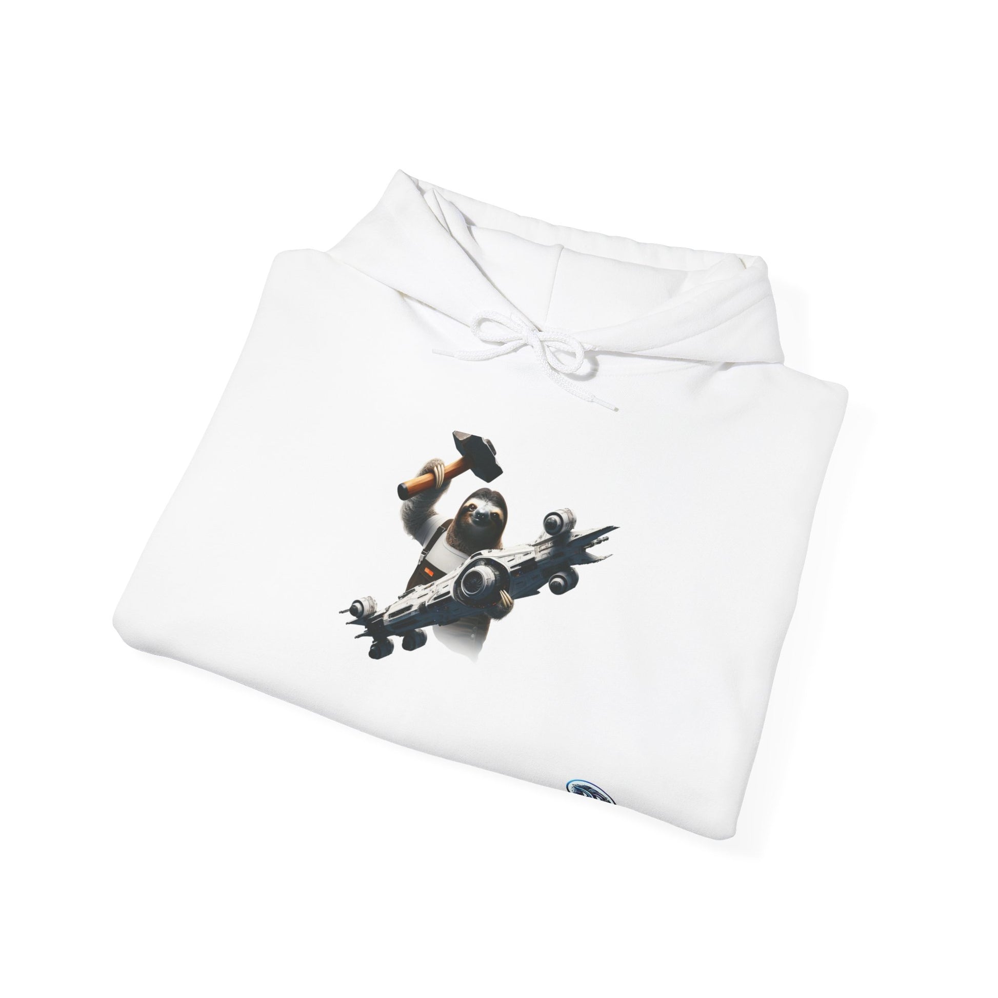 Introducing our Space Sloth Hoodie: Join our intrepid space-bound sloth as he fixes his high-tech spaceship with an unexpectedly large hammer. Our hoodie features a determined yet relaxed sloth, a sleek spaceship design, and a comical twist with the oversized hammer. Stand out in style with this unique and humorous design. #SpaceSloth #FuturisticFashion #FunnyHoodie #HighTech #SlothLife #SpaceAdventures #CoolGraphic #HammerTime #ComfyAndStylish #LimitedEdition