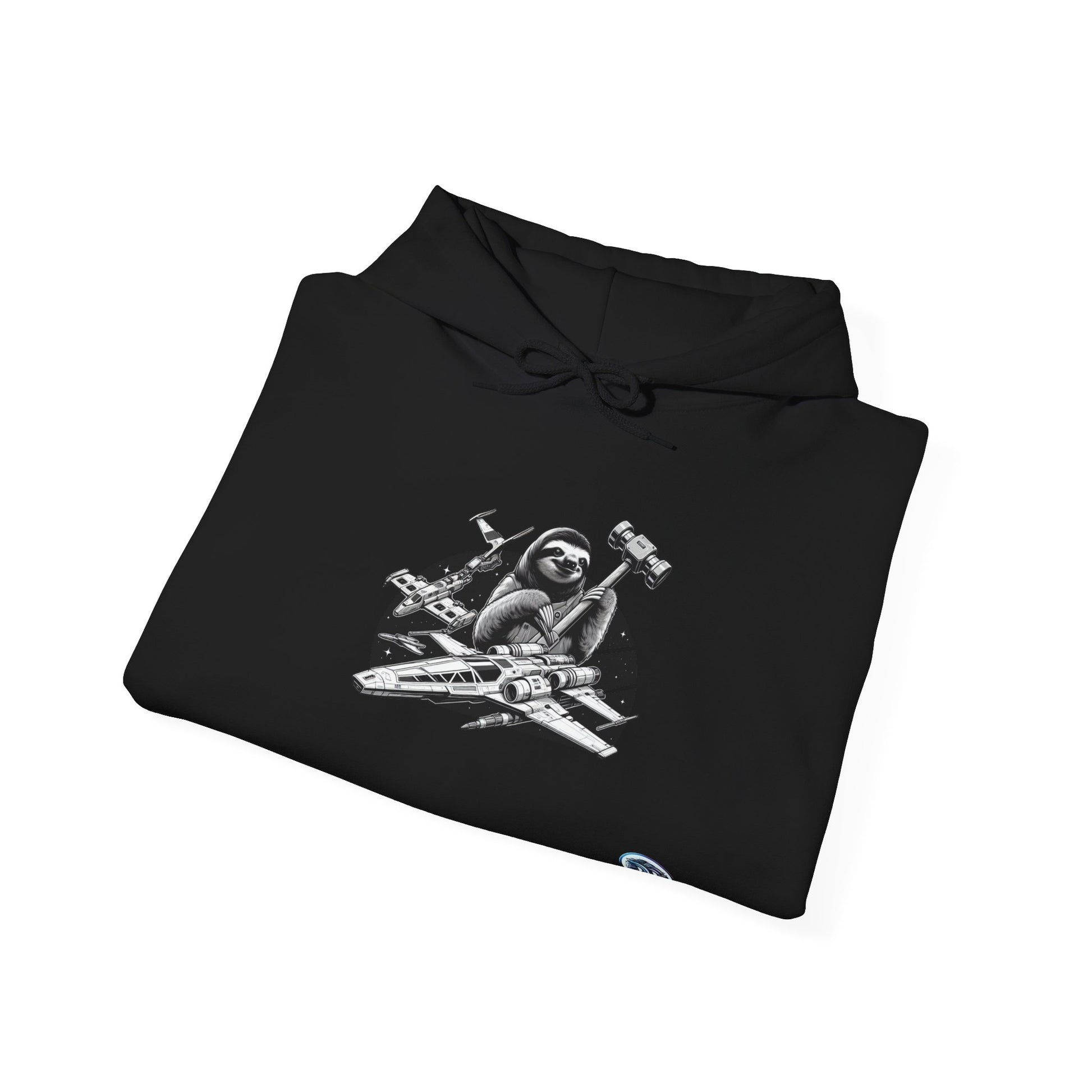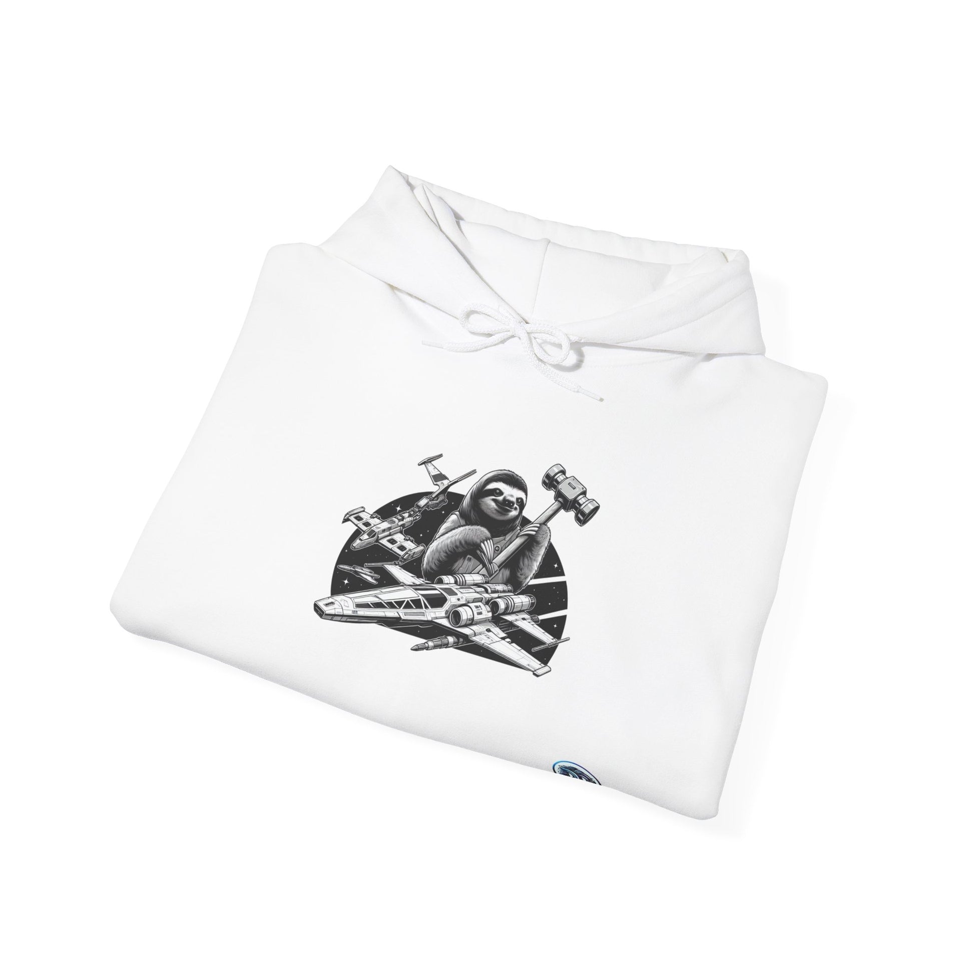 Introducing our exclusive futuristic space sloth hoodie! This hoodie features a determined yet relaxed sloth fixing his advanced spaceship with an unusually large hammer. The sleek design of the spaceship and the humorous touch of the oversized hammer make this hoodie truly unique. Get ready to stand out with this one-of-a-kind design!