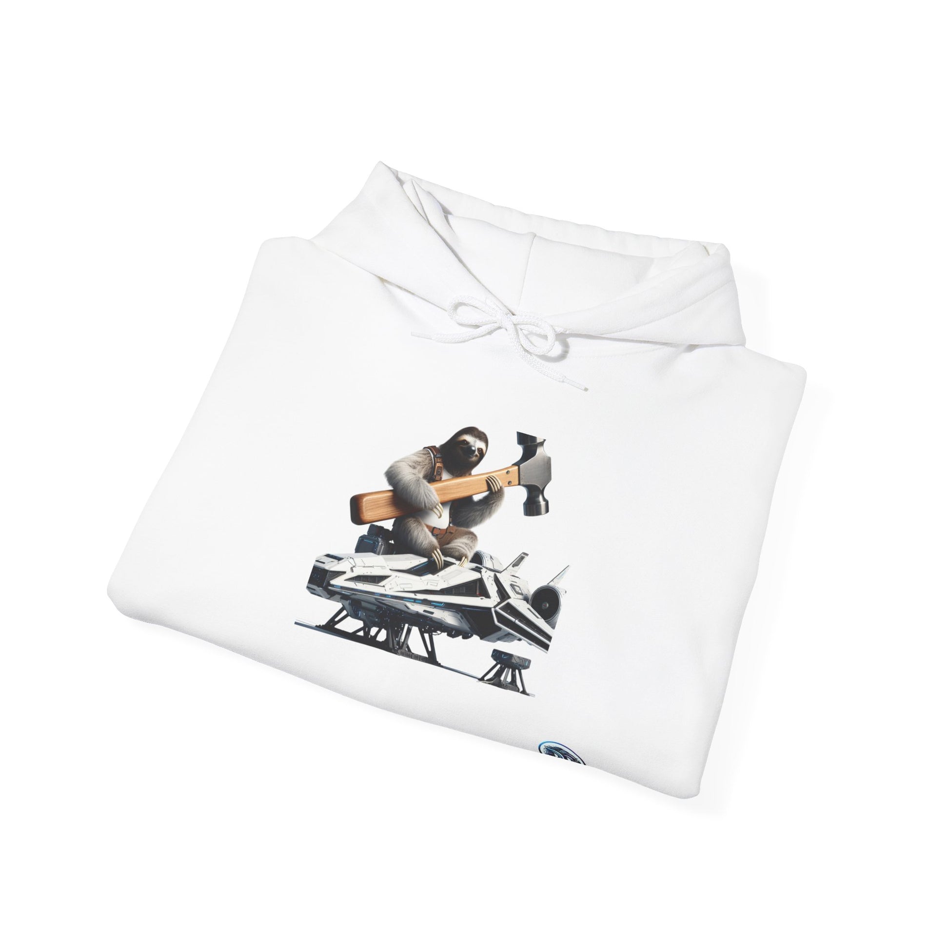 Introducing our space-inspired hoodie! Dive into a world where futuristic sloths roam the stars. Picture a determined yet laid-back sloth fixing its sleek spaceship with an unusually large hammer—creating a scene that combines high-tech design with a touch of humor. Every detail crafted to perfection on a clean white canvas. #SpaceSloth #FuturisticFashion #OuterSpaceHumor #SlothAdventures #SpaceBound #GalacticStyle #CosmicComedy #FuturisticDesign #AdventureAwaits #HighTechHoodie