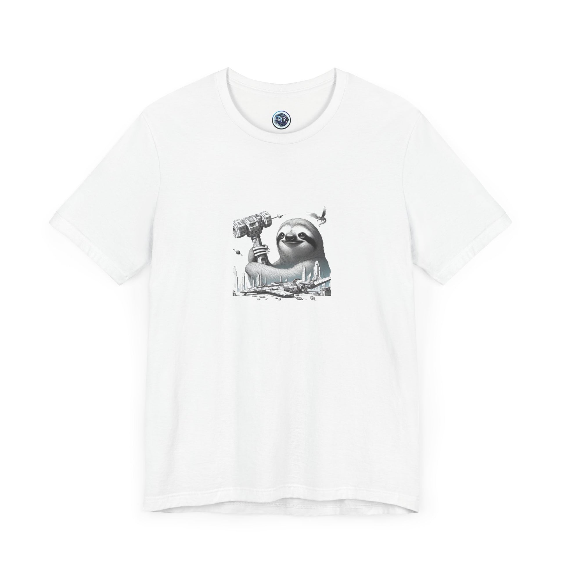 "Unleash your inner space explorer with our exclusive Space Sloth T-shirt! This one-of-a-kind design features a determined yet relaxed sloth fixing its high-tech spaceship with an unusually large hammer. The sleek spaceship design and humorous twist make this shirt a must-have for any sci-fi enthusiast. Get ready to blast off in style! #SpaceSloth #FuturisticFashion #SlothInSpace #SpaceExplorer #FunnyTee #NoveltyShirt #UniqueDesign #HighTechSloth #OuterSpaceAdventures #GalacticFashion"