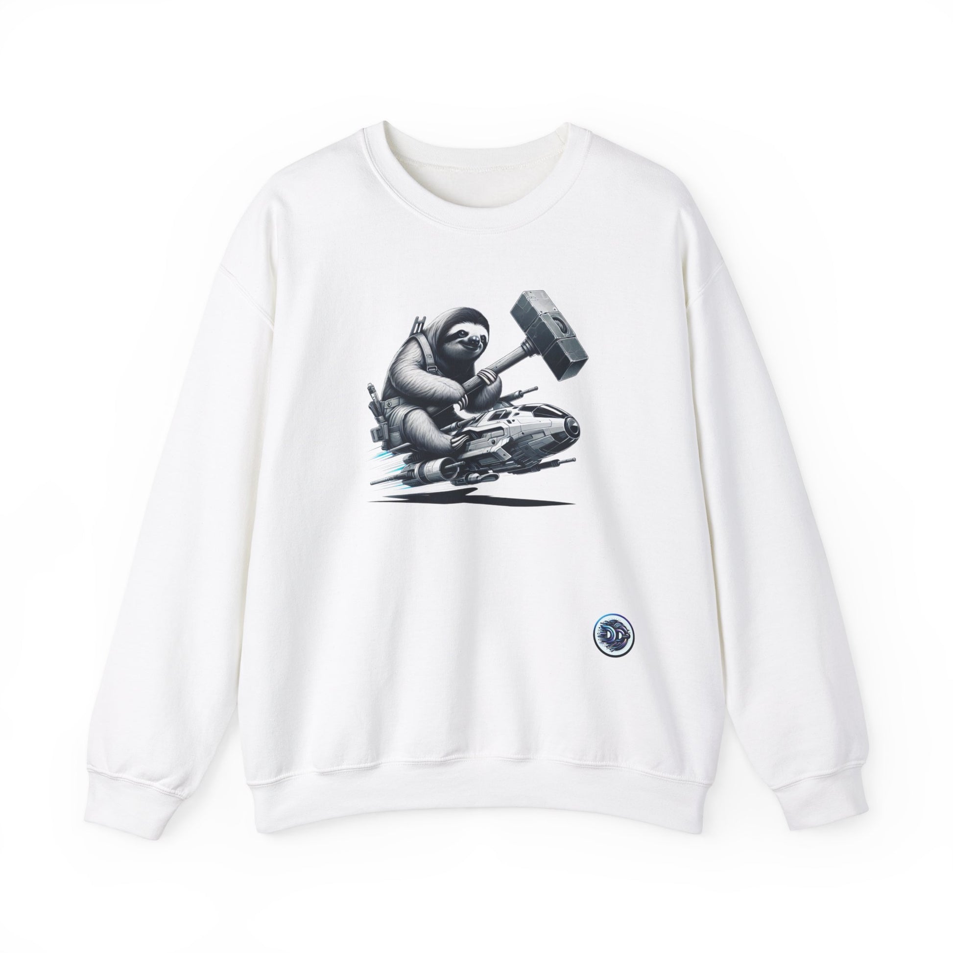 Introducing our exclusive Crewneck featuring a futuristic space-bound sloth and a massive hammer! Watch as this determined yet relaxed sloth fixes its sleek spaceship with a humorous twist. Every detail is finely rendered, making this design truly out of this world. #FuturisticFashion #SpaceboundSloth #CrewneckDesign #HighTechSpaceship #HumorousTwist #UniqueIllustration #SlothInSpace #FashionStatement #LimitedEdition #ShopNow