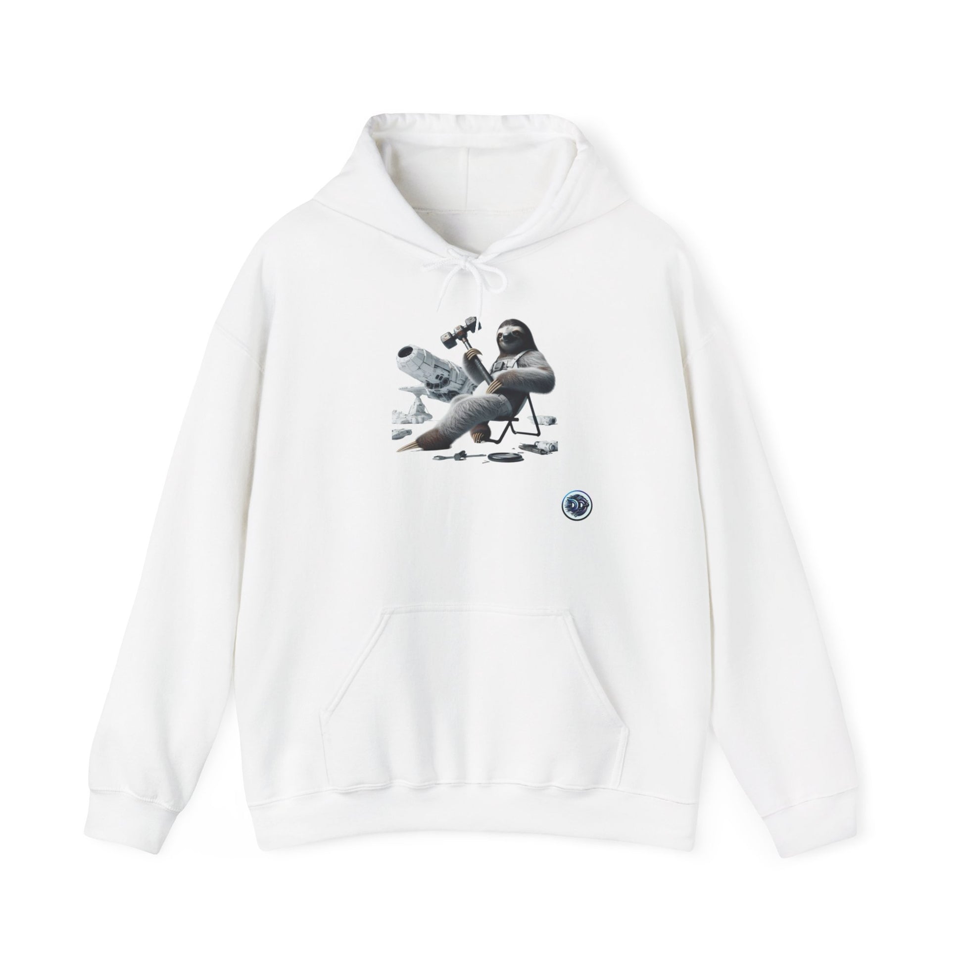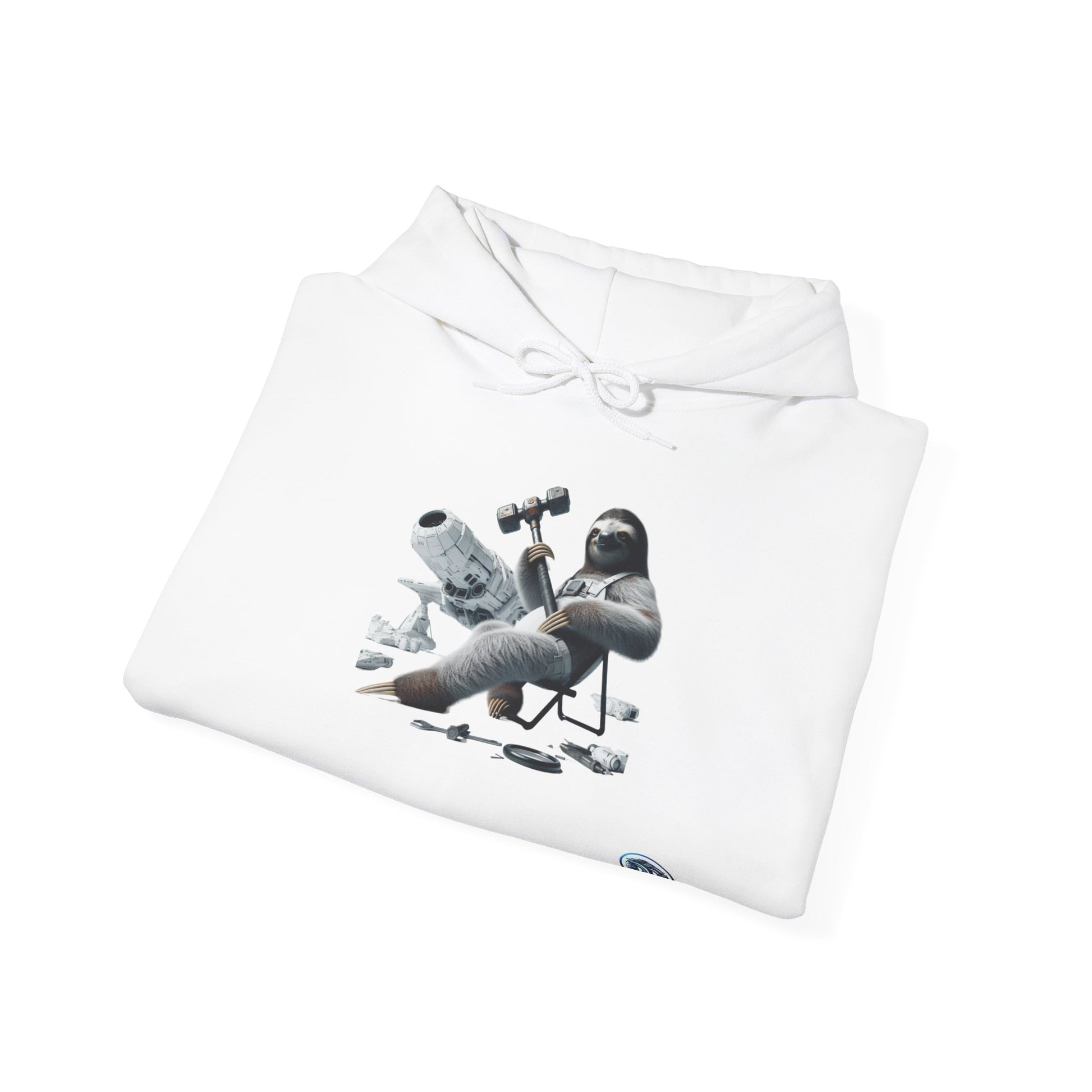 Introducing our exclusive "Space Sloth Repair" Hoodie! Step into a world where futuristic meets whimsical with this unique design. Imagine a space-bound sloth confidently wielding a massive hammer, fixing his sleek spaceship with a relaxed demeanor. The intricate details bring this scene to life on a pure white background. Get ready to stand out with this one-of-a-kind hoodie! #SpaceSloth #FuturisticFashion #UniqueDesign #HumorousTwist #HighTechStyle #CreativeApparel #SlothLove #CoolHoodie #SpaceVibes #StandOutStyle