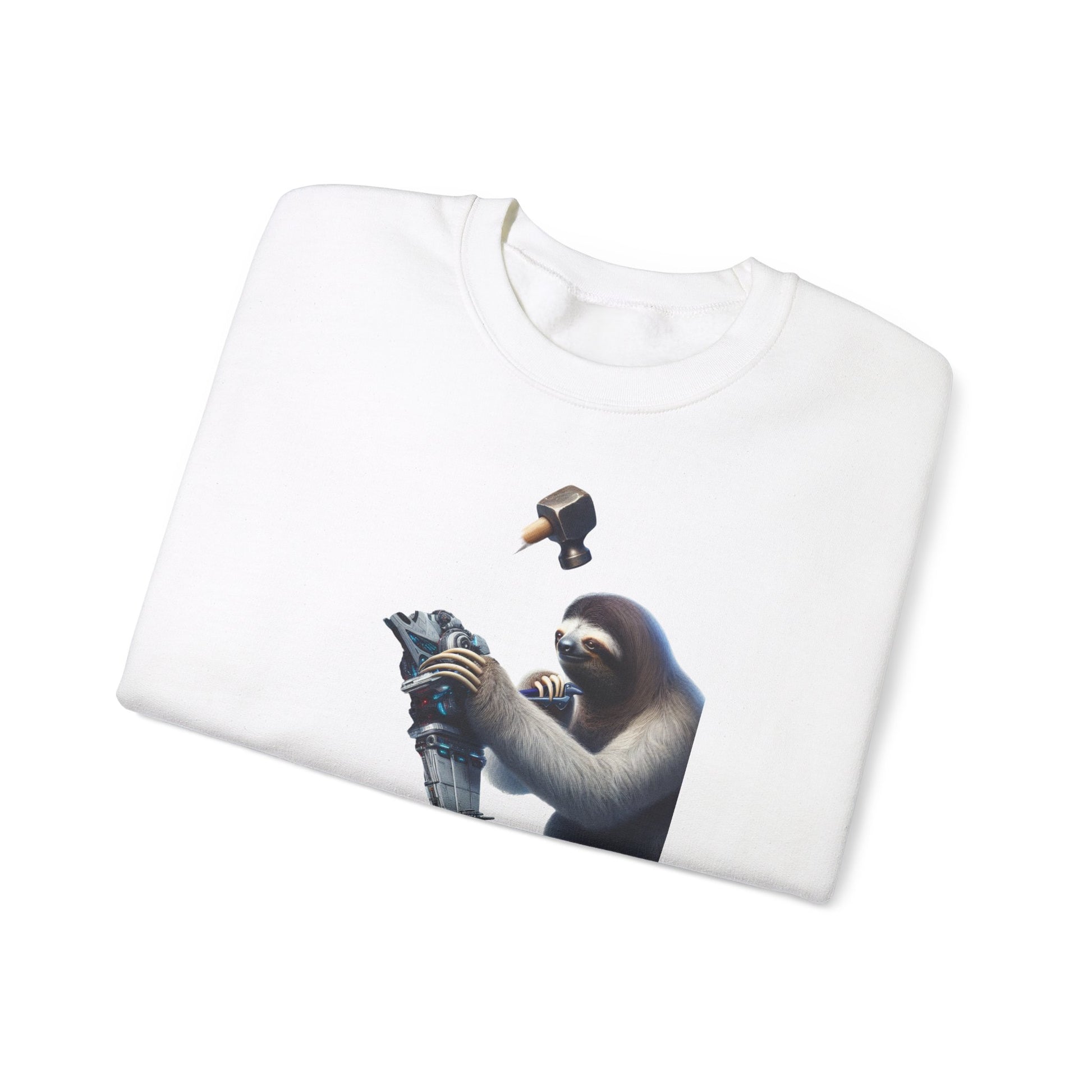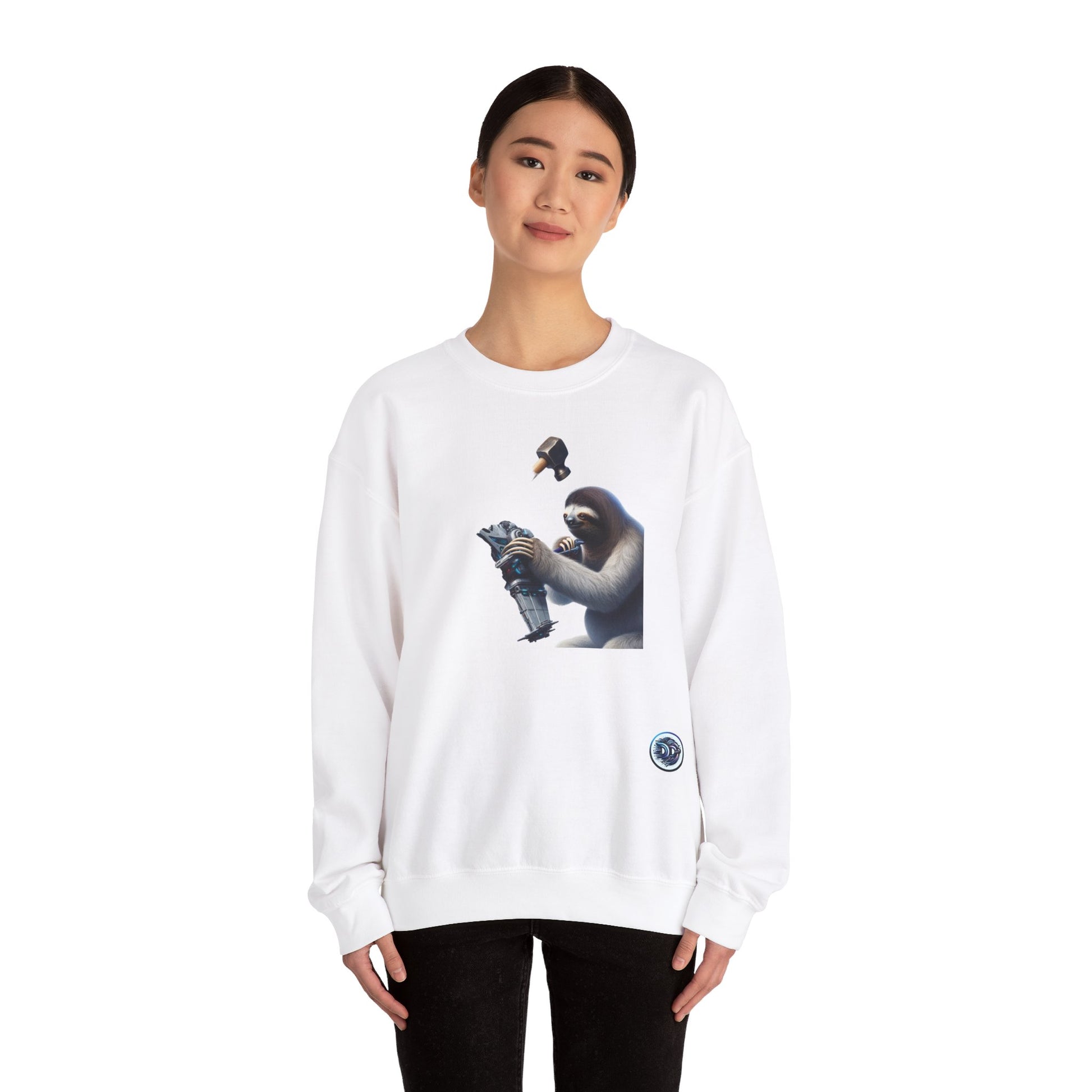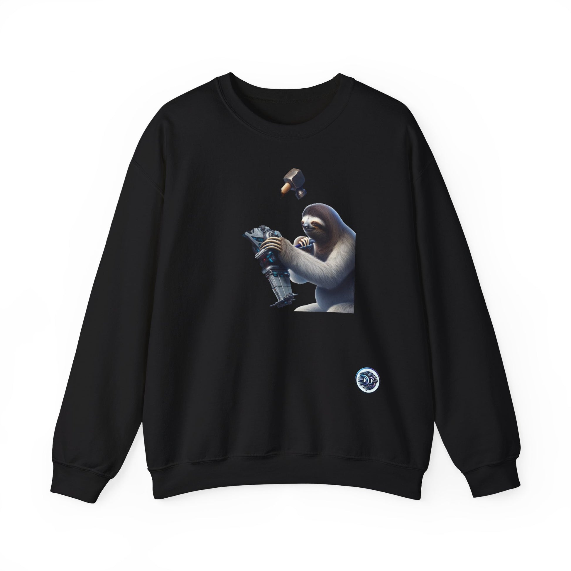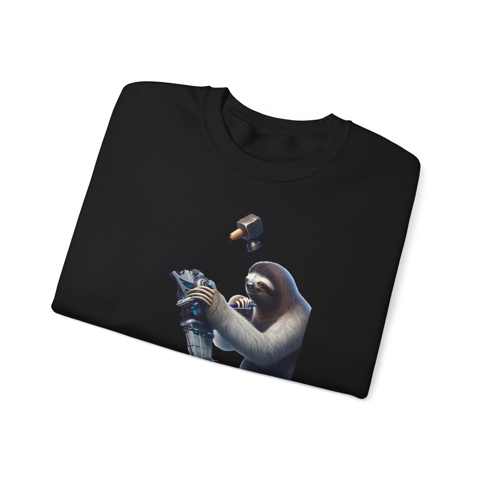 Introducing our futuristic Crewneck - witness a space-bound sloth fixing his spaceship with a remarkably large hammer. The sloth's determined yet relaxed demeanor, coupled with the sleek and advanced spaceship designs, create a whimsical yet captivating scene. Every detail finely rendered to tell a unique story. #Crewneck #FuturisticFashion #SpaceBoundSloth #SleekDesigns #HighTechSpaceship #HumorousTwist #UniqueArtwork #DeterminedSloth #WhimsicalFashion #LimitedEdition