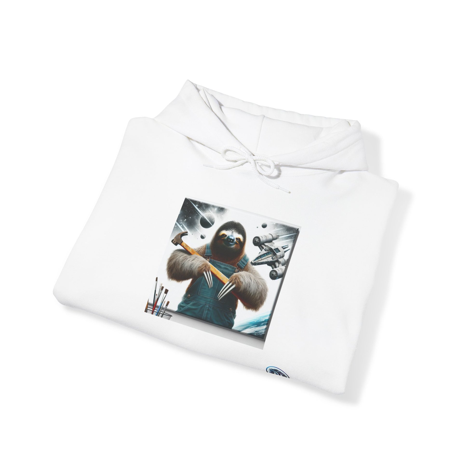 Introducing our space-bound sloth hoodie! Picture a futuristic sloth calmly fixing his high-tech spaceship using a comically large hammer. This design captures determination, relaxation, and whimsy in one frame. Get ready to stand out with this unique, detailed artwork! #sloth #spacesloth #futuristic #hoodie #high tech #humor #spaceship #hammer #quirky #unique